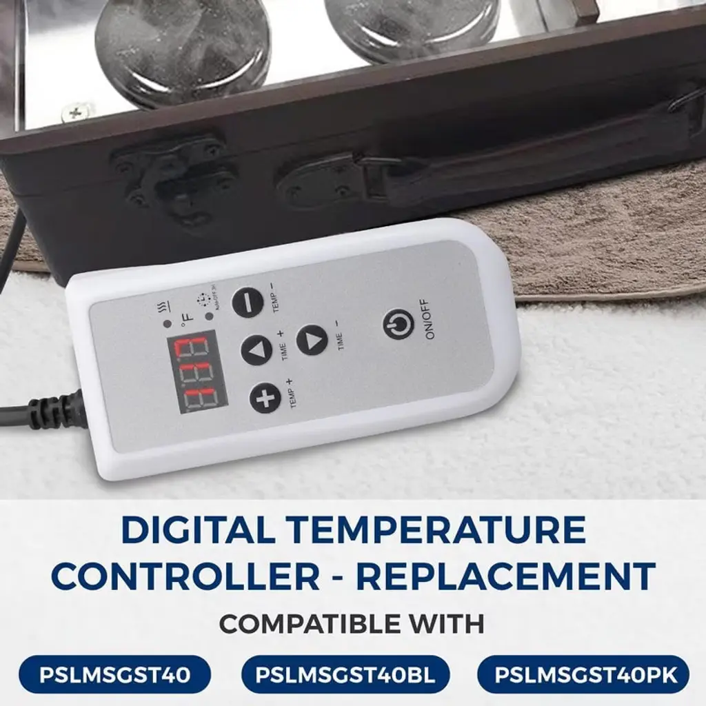 The SereneLife Digital Temperature Controller (PRTPSLMSGST7010) is a reliable and easy-to-use replacement controller for the PSLMSGST70B model. With a digital LCD display and selectable temperature settings, this controller ensures precise temperature control for your heating system. Perfect for a variety of applications, it provides support for temperature readings in Fahrenheit and is simple to operate with its plug-and-play design.