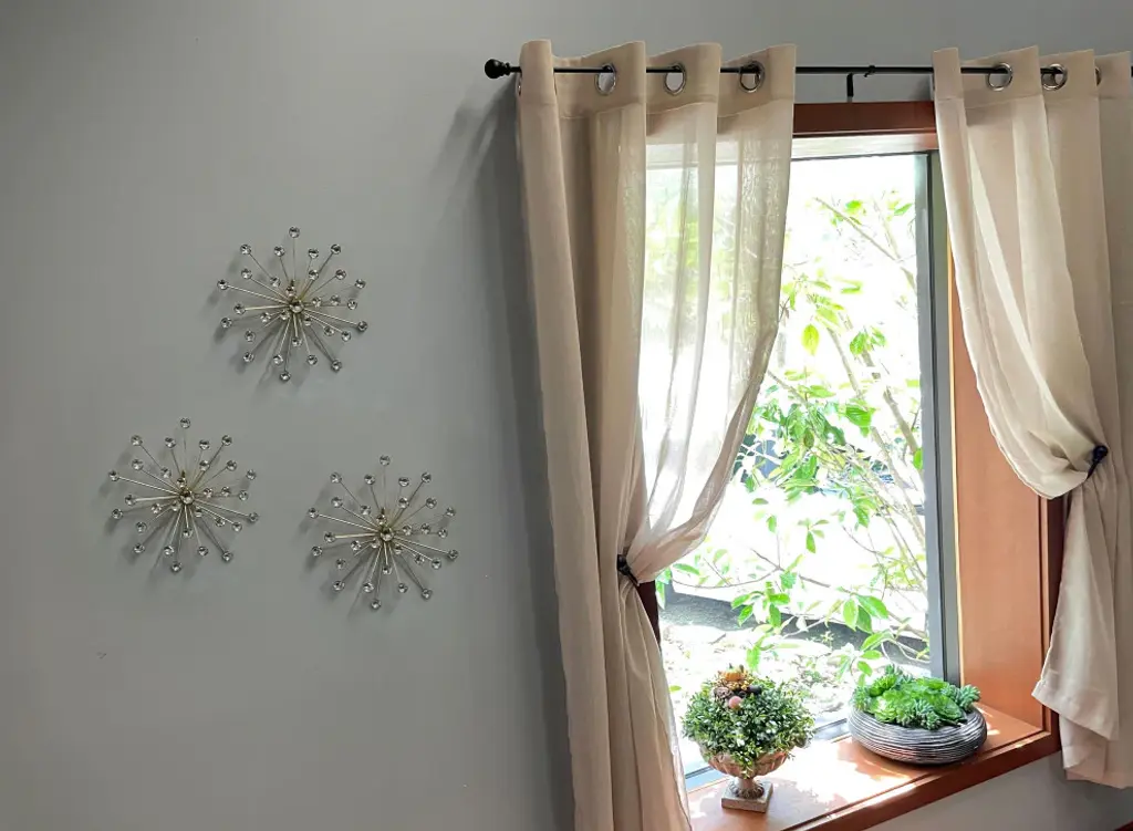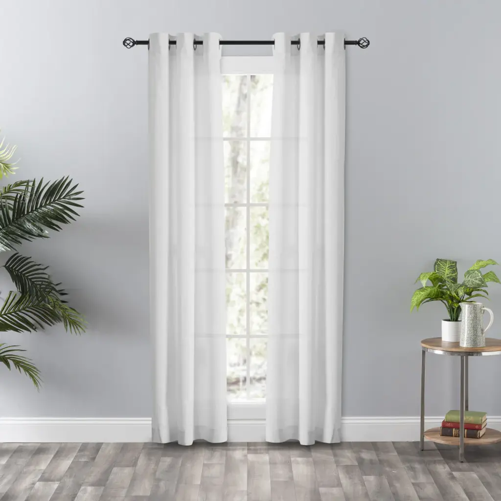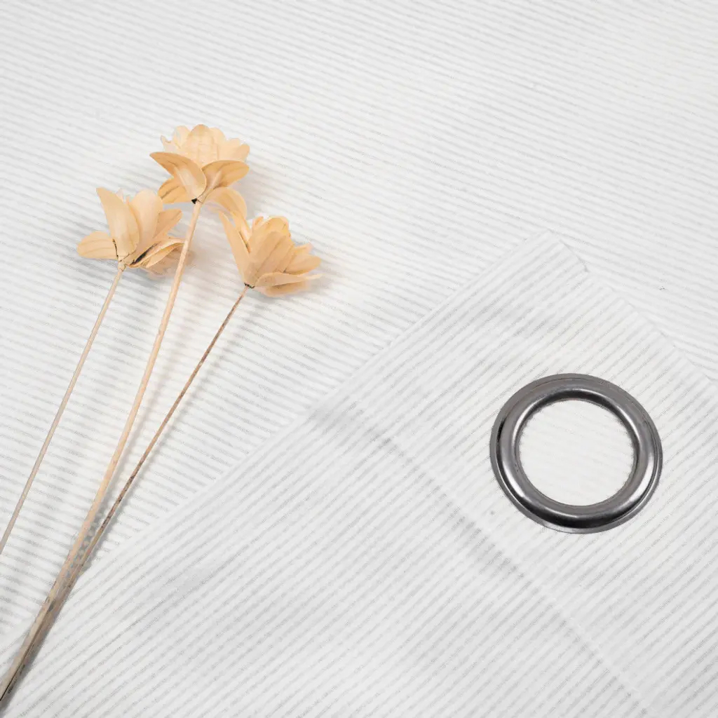 Casual, classic two-tone stripes are sure to bring a stylish look to any room all year long. A semi-sheer fresh fabric filters light without blocking it. Made with 52% polyester and 48% cotton for a smooth draping effect. Sold as 2 panels, width is measured at 80 inches (both 40-inch panels together), length is measured at 84 inches. Grommet panels are machine washable for easy care.