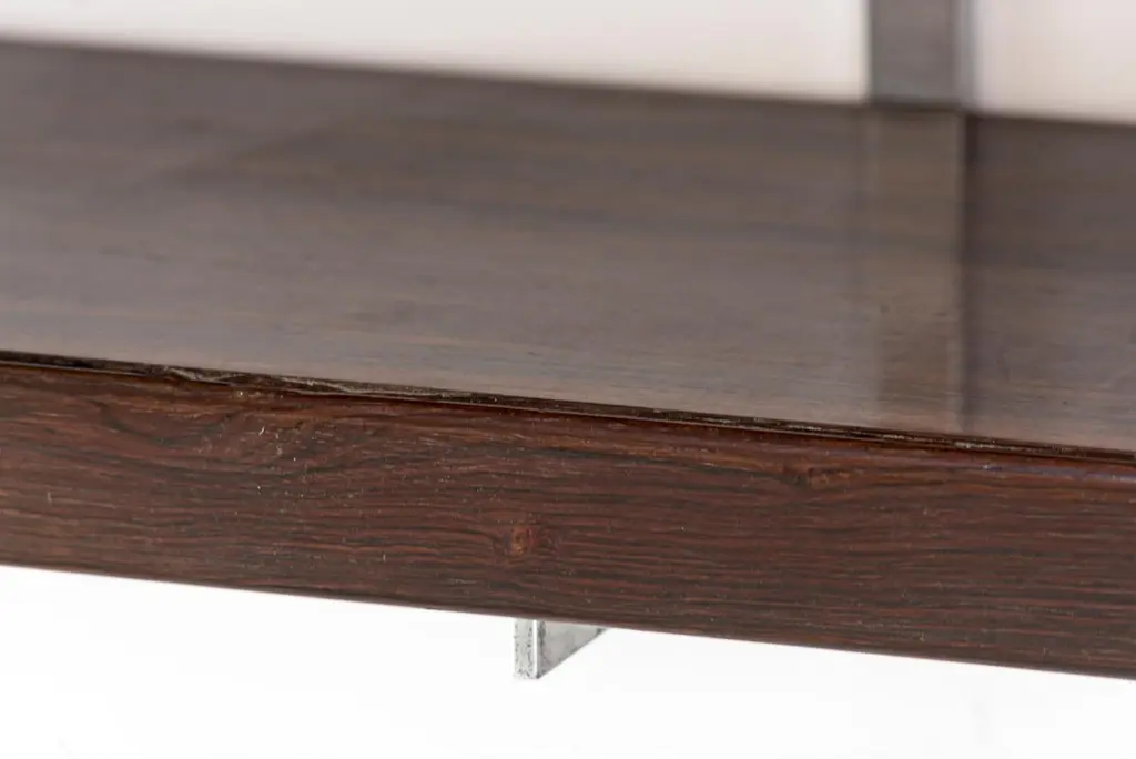 Sergio Rodrigues,Pair of shelves model “Georges Nelson”Manufactured by OcaBrasil, 1965Jacaranda wood, chrome metal frame and leatherFrom the archives of Side Gallery, Barcelona Measurements250 cm x 50 cm x 30 cm height98.4 in x 19.6 in x 11.8 in heightLiteratureSergio Rodrigues, catalogue raisonné, Edition Icatu, 2000, Rio de Janeiro,page 263.BiographySergio Rodrigues was born in Rio de Janeiro in 1927. After graduating in 1952 from the Faculdade Nacional de Arquitetura, he assisted in opening Moveis Artesanal Paranaense, the first modern art and furniture store in Curitiba in Brazil. In 1955, Rodrigues founded Oca, one of the most influential modern furniture companies in Brazil. Amongst his wellknown works are pieces of furniture designed for the Brazilian Embassy in Rome, for the UNB (Brasília University) and the Teatro Nacional (National Theater in Brasília). The designer has worked closely with Oscar Niemeyer, as the latter’s interior designer of choice for his buildings in Brasilia.