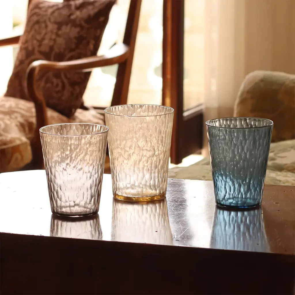 This tall, large glass is expertly hand-blown using traditional Murano techniques and intricately engraved to create a unique snakeskin effect on the surface. This delicate yet distinctive carving enhances both the visual appeal and tactile experience of the glass. The Serpentin is ideal for cocktails, and each piece is handcrafted and signed, ensuring a unique touch. Slight variations in appearance may occur due to the artisanal nature of the product. To maintain its beauty, hand wash only.