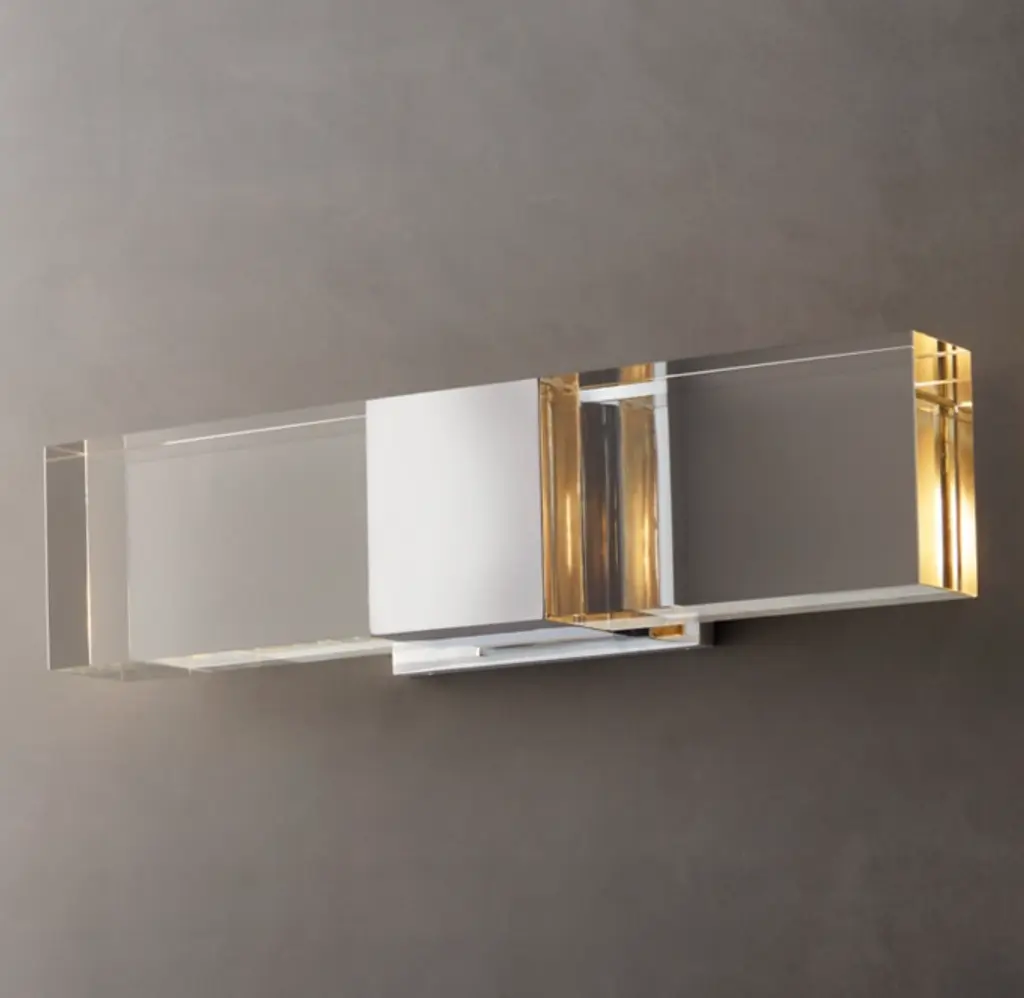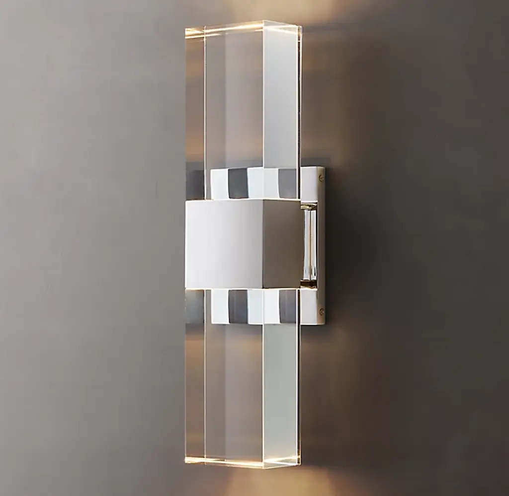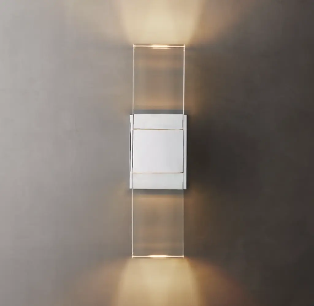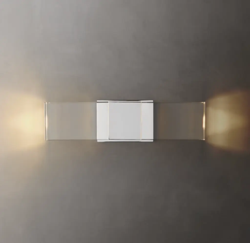 Classic architectural forms are reimagined with crisp lines and sharp angles in our collection from Ian K. Fowler. Drawing on postmodern influences, the bold, sculptural silhouette transitions seamlessly from the rectangular steel framework to a clear, solid crystal shade.
