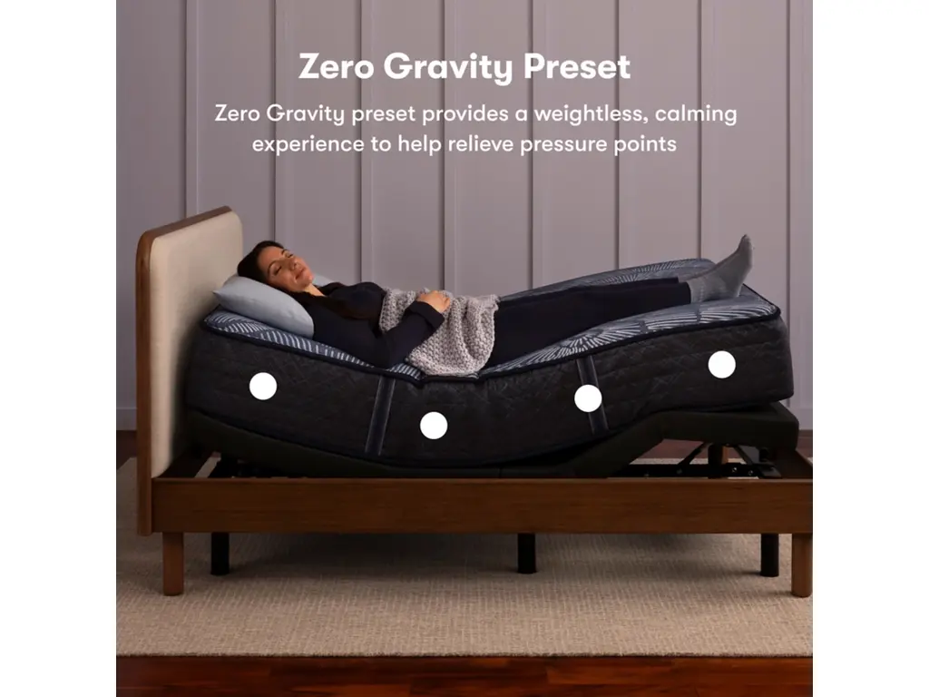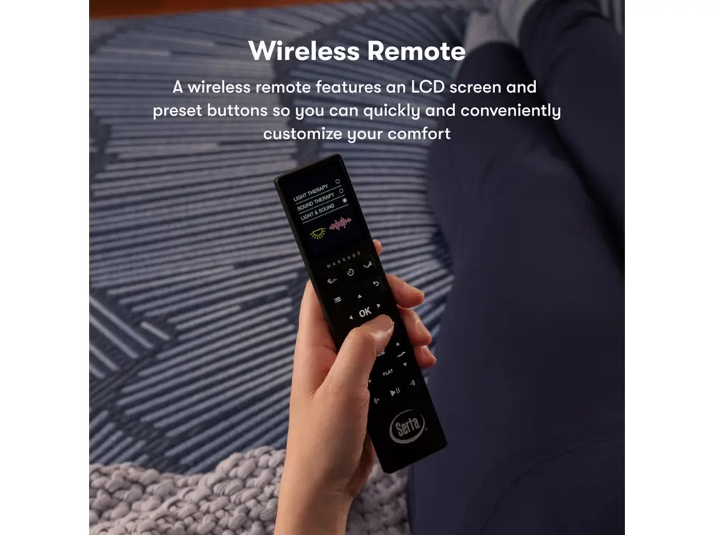 Customize your sleep experience with our Serta® Motion Renew™ Adjustable Base. Featuring full head and foot adjustability, plus USB-A and USB-C ports for easy device charging, this base combines all the features you need into one convenient place. Set a cozy mood, or light your way to a midnight snack, with three ambient under-bed light settings. Then, snooze the night away with the help of an integrated white, pink, and brown noise machine. Sleep, or wake, with a calming dual massage feature, and control it all with a wireless remote—choosing from presets like Zero Gravity for a weightless feel, Anti-Snore for a silent night, and One-Touch flat so you can easily rise for the day ahead. Sleep better with the touch of a button—all with the new Motion Renew Adjustable Base.