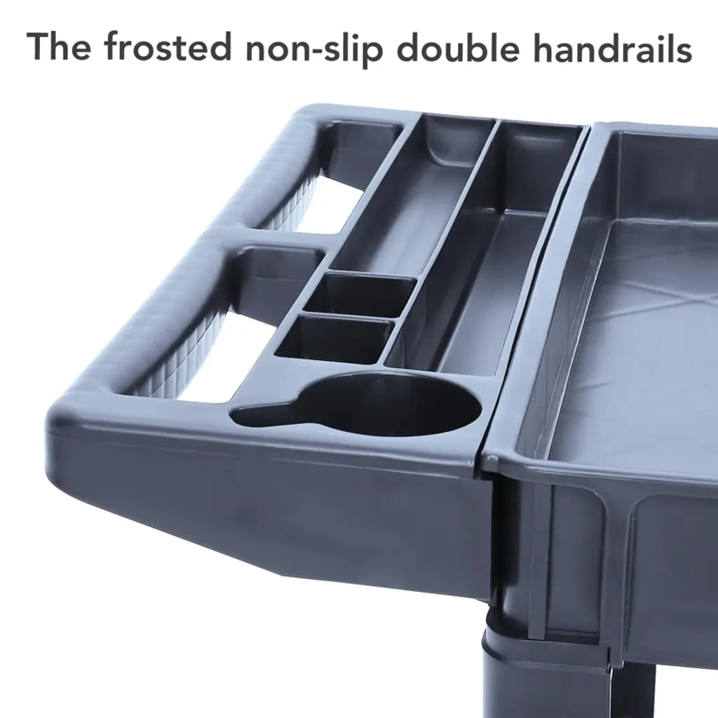 Built for industrial performance, this heavy-duty 2-shelf utility cart supports up to 500 lbs and resists wear in demanding environments. Its high-quality build combines ruggedness with lightweight maneuverability, so you can transport heavy tools, materials, or packages with ease. The ergonomic handle design improves control, while shock-absorbing wheels provide quiet movement over a variety of surfaces. Rounded protective corners safeguard your workspace from accidental bumps.