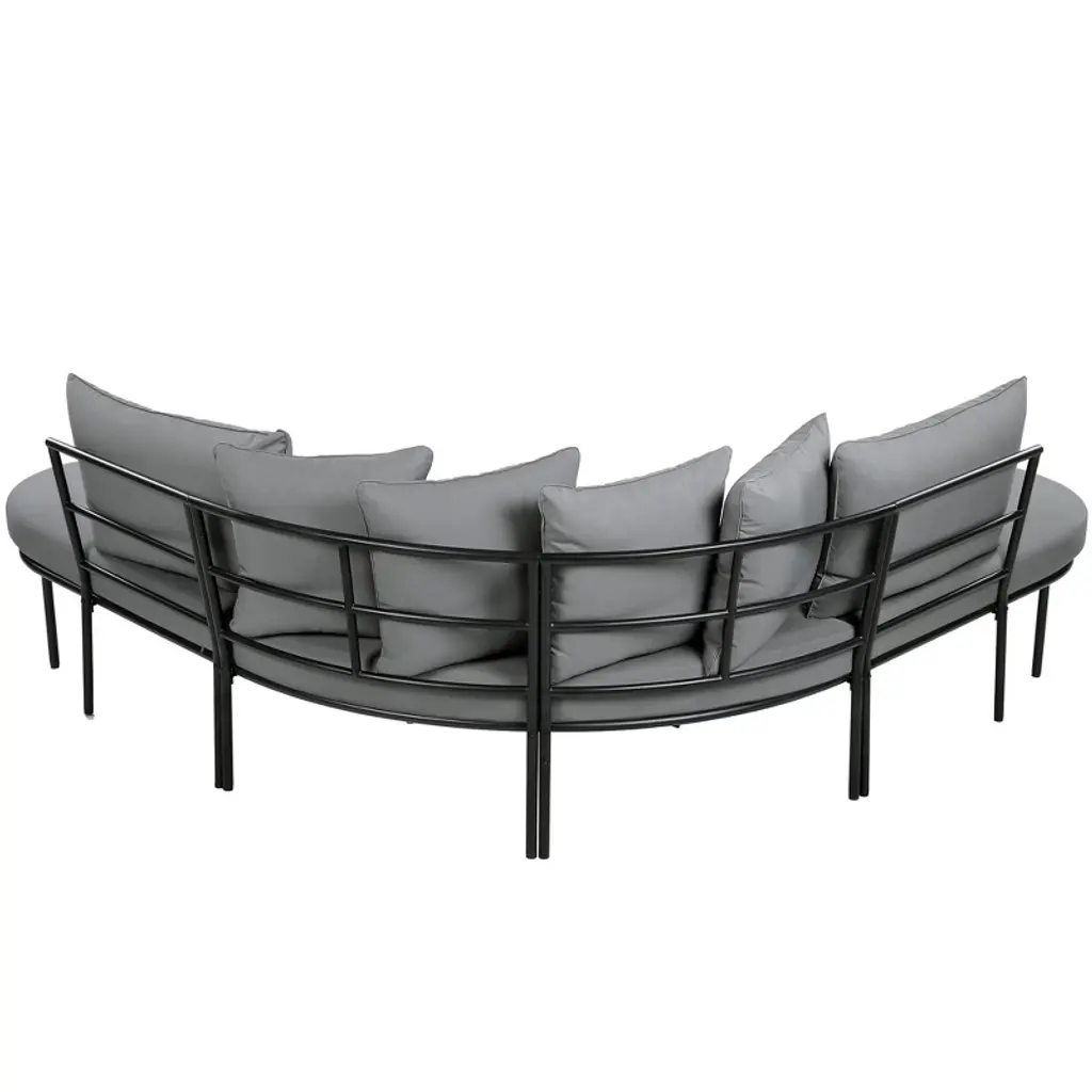 Enhance your outdoor space with our stunning half - moon curved outdoor furniture sofa set. Designed for 6 people, this set features a unique curved design with a coffee table, creating an intimate and inviting conversation area. The all - weather iron frame ensures durability, while the padded seats and backrest cushions provide exceptional comfort. Suitable for both outdoor and indoor use, this set is a perfect addition to your garden, patio, or sunroom. Enjoy stylish and comfortable gatherings with this exceptional furniture set.