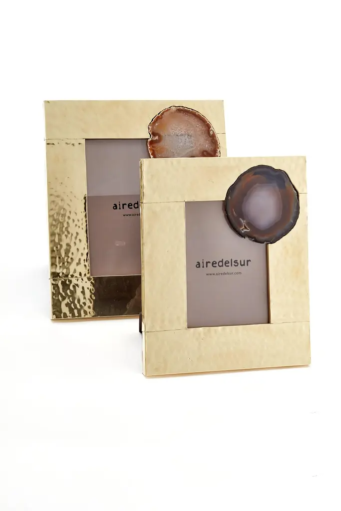 Set Misiones Medium & Large Brass & Agate Stone Photoframes