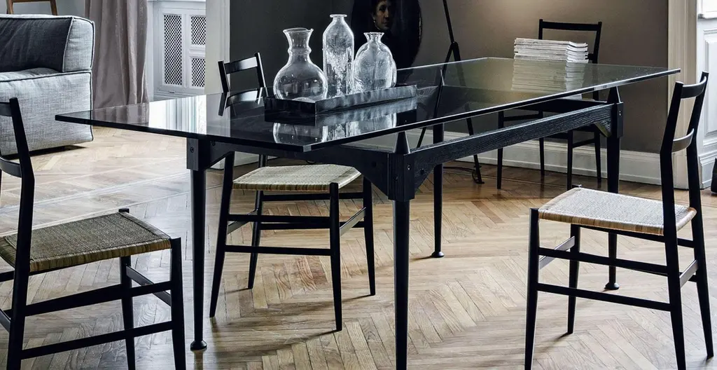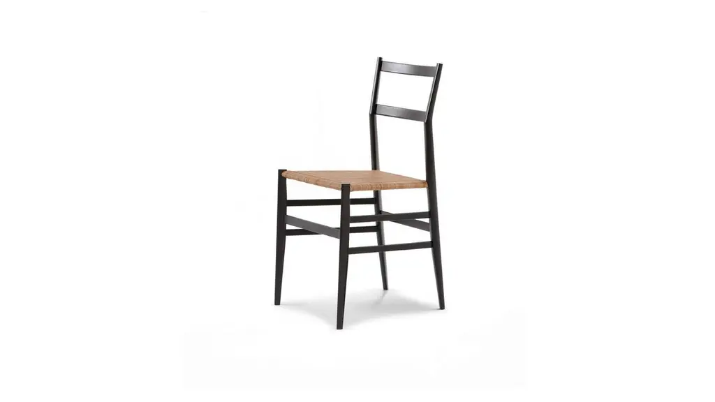 Set of 10 Gio Ponti 699 Superleggera by Cassina in blackManufactured since 1957, the Superleggera wood chair is the rare combination of the architect’s innovative quest and the cutting-edge experimentation by the Meda-based company, becoming the indisputable icon and masterpiece of modernity and extreme artisanal elegance.A highlight of Cassina’s catalogue since 1957, the Superleggera represents the perfect outcome between the creative imagination of the architect Gio Ponti, and Cassina’s manufacturing excellence, an undisputed icon that is both of- the-moment and pays tribute to traditional artisanal skills. Superleggera demonstrates the constructive prowess of the MedaMade craftsmen: the challenge they faced, of making an extra-light chair, was overcome with the Superleggera’s legs having a cross-section of just eighteen millimetres, the whole weighing a mere 1,700 grams! While the frame exploits the inherent lightness and flexibility of ashwood, the seat surround is in beech, which is more close-grained and stronger. The wood parts are created by machine, and hand-finished, glue being applied with a brush, the excess being wiped off, and the seat being hand-woven. Thus do crafts expertise and industrial innovation come together in what we could call a “prime object”, informed by the chair-making traditions of Chiavari, in Liguria, northern Italy.