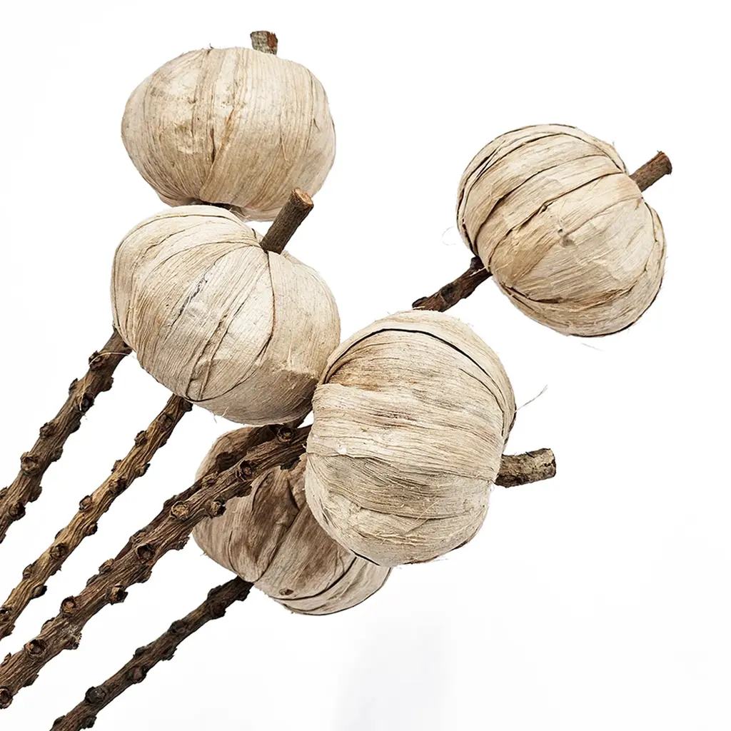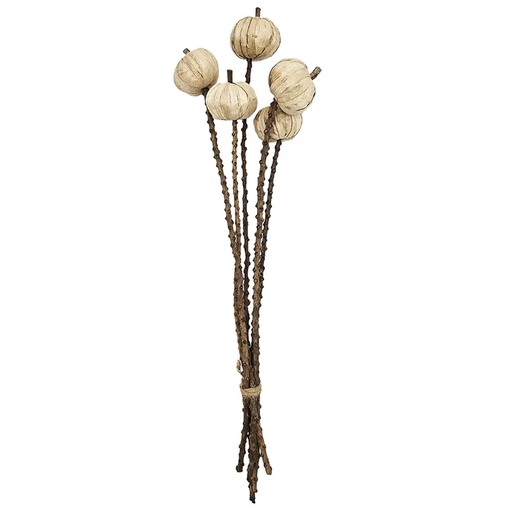 A delightful rustic accent piece with a distinctly festive quality that’s well suited for modern farmhouse decor. This harvest decor favorite depicts a bunch pumpkin pod twig stem, 100% dry plant, for a genuine harvest festival look. It’s a wonderful addition to tabletops vase, consoles, foyers, and tablescapes of all varieties.
