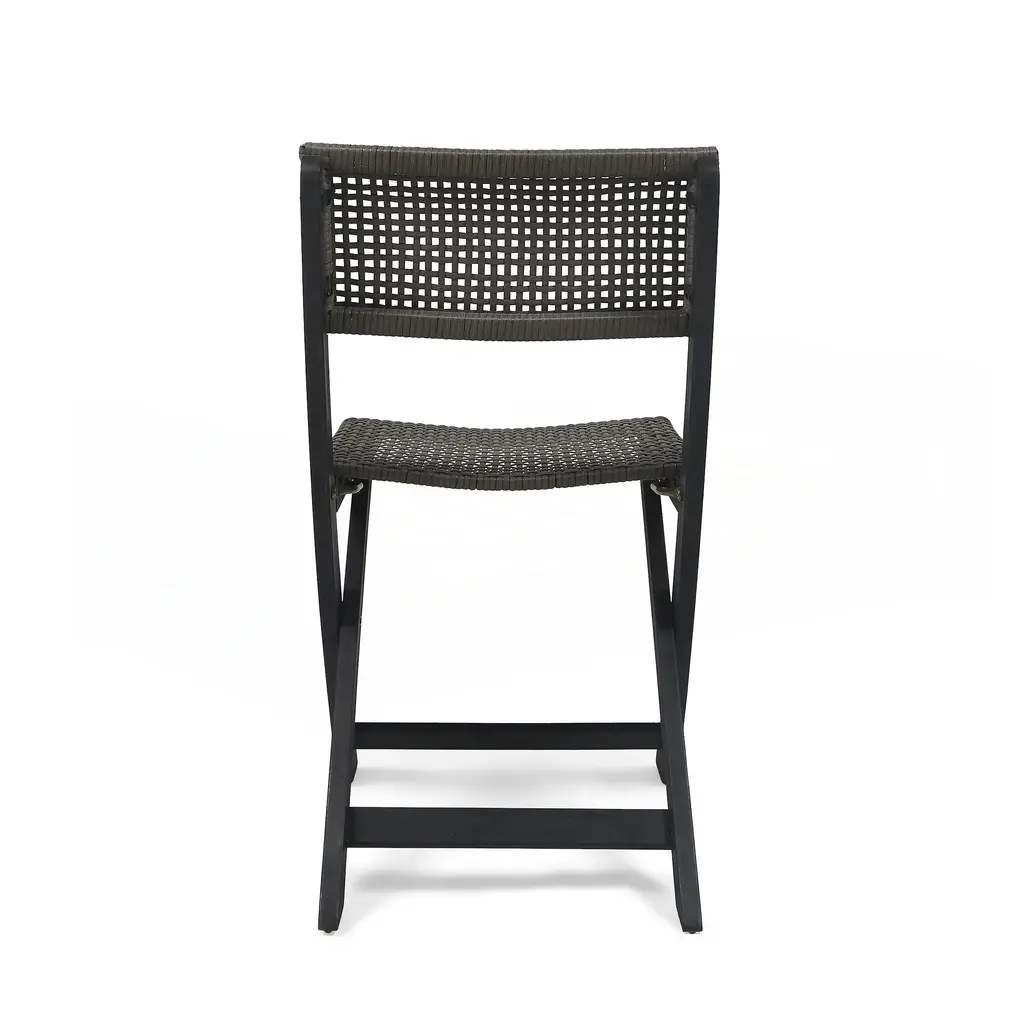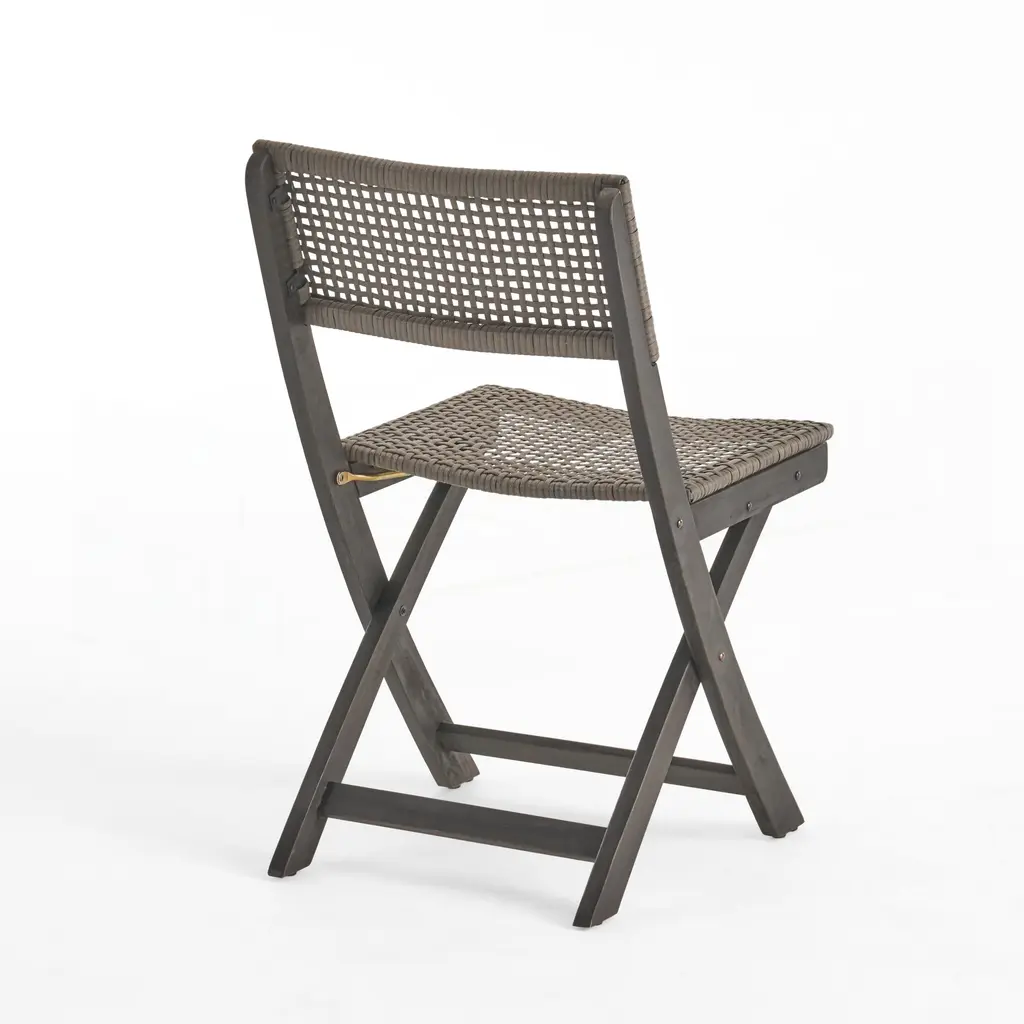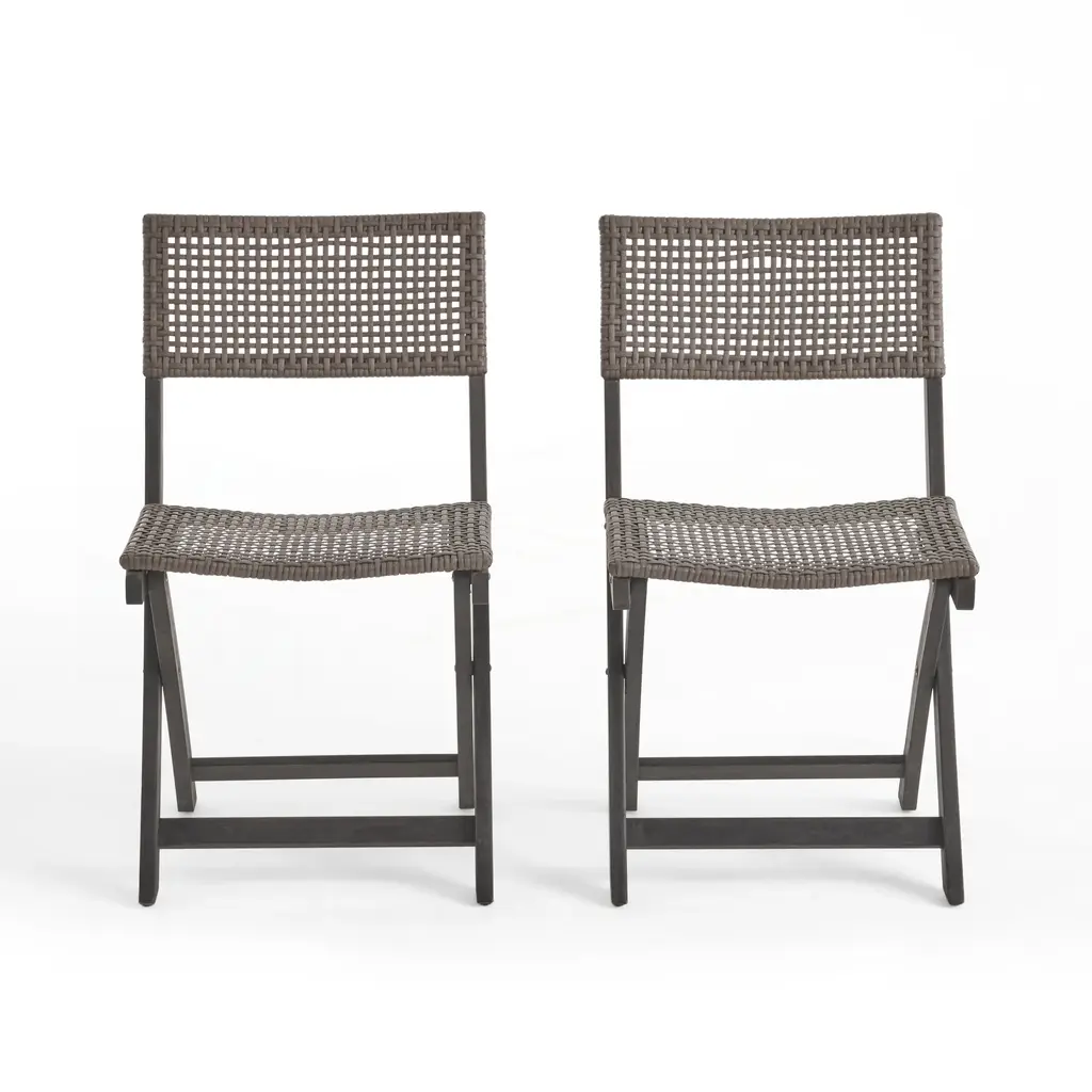 Set Of 2 Acacia Wood Foldable Wicker Chairs - Grey