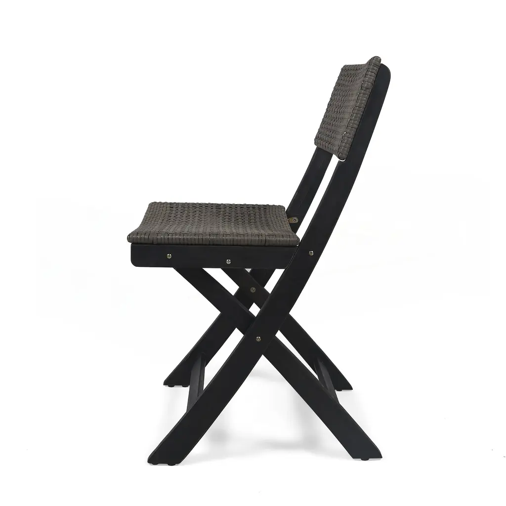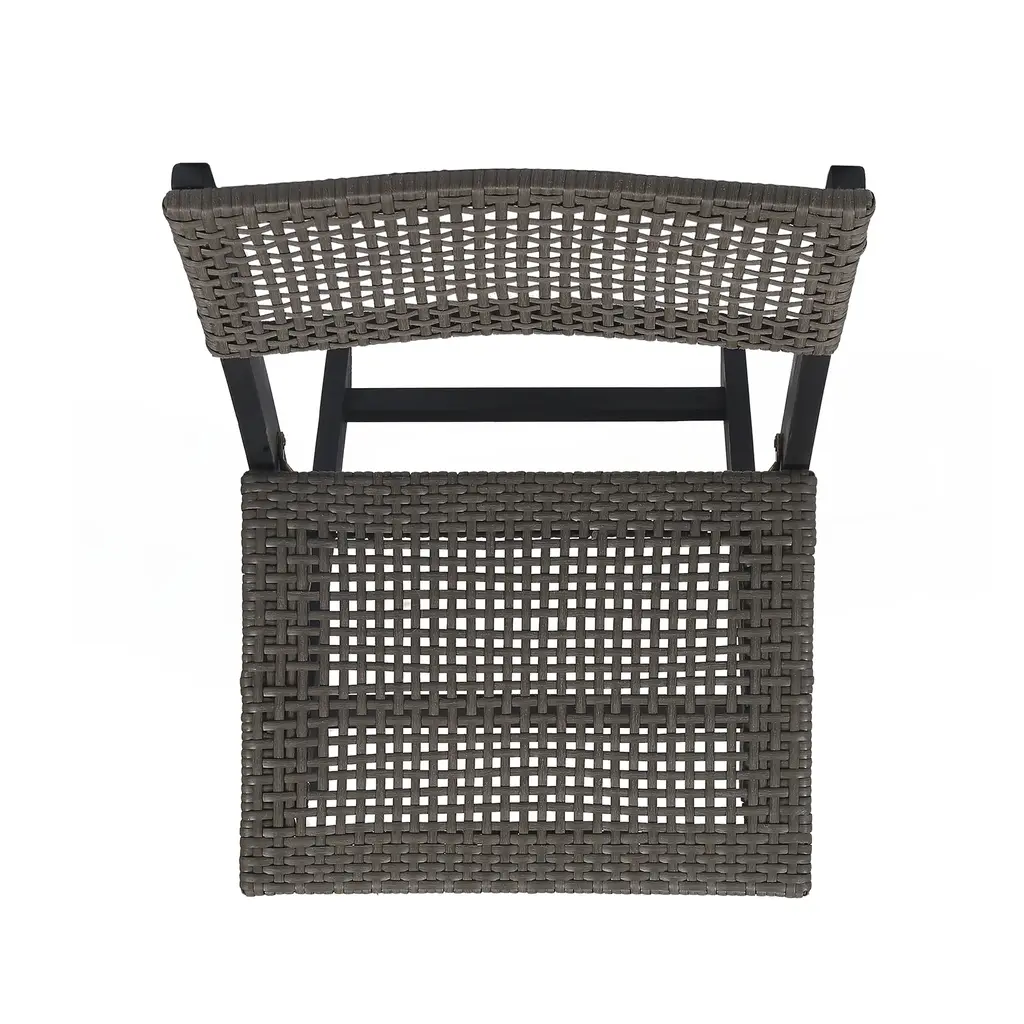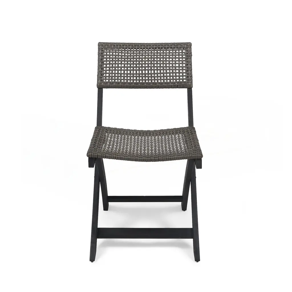 Set Of 2 Acacia Wood Foldable Wicker Chairs - Grey