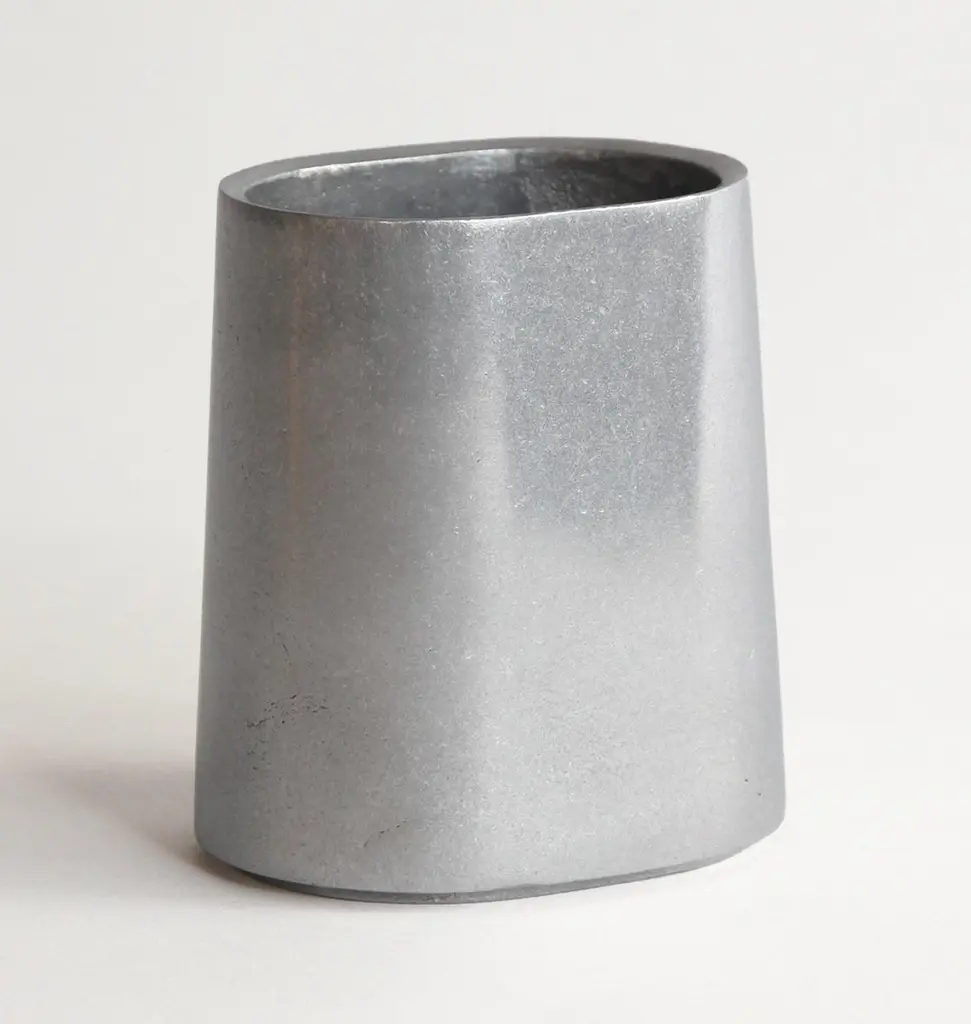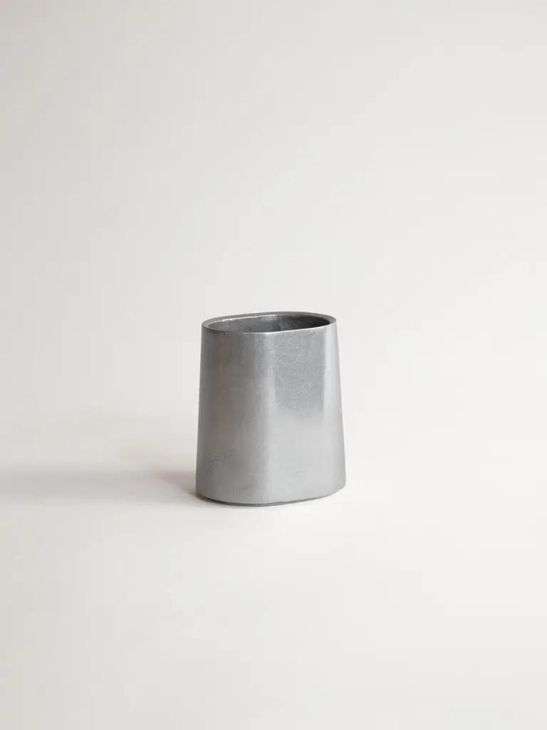 Set of 2 Aluminum Taper Pen Stands by Stem DesignDimensions: D 8 x W 10 x H 11 cm (each.) Materials: Aluminum.Finish: Tumbled and burnishedWeight: 0,5 kg (each.)Finished and assembled by hand in India. Also available in brass. Please contact us. An ellipse rising from a wide base, the Taper pen stand reveals its character through a simple and honest form. The surface reflects light beautifully and results in a subtle sheen, giving it the ability to add richness to any table setting and the objects it holds. The solid form available in aluminum and brass is imagined on a work desk, a night-stand, the shelves in the corridor, or a bar counter.The objects layers on as a metaphor and showcases the beauty of being who you are. It strips off all the layers of ornamentation and artificial finishes to build an immediate and intuitive connection with the product that lasts a lifetime.Stem is a contemporary Indian product design studio creating hand-crafted lighting and home accessories. Led by Aman Bhayana and Sugandhi Mehrotra, the studio’s philosophy revolves around storytelling, aiming to evoke a deep sense of connection with each product. Our vision is to create an immersive experience where art seamlessly integrates into everyday living. While honoring traditional craftsmanship, each piece is carefully hand-crafted, showcasing attention to detail and a sense of individuality. The designs are sustainably crafted to endure the test of time, gracefully aging with each passing year. These products become bearers of stories, connecting generations and serving as a source of inspiration throughout a lifetime.