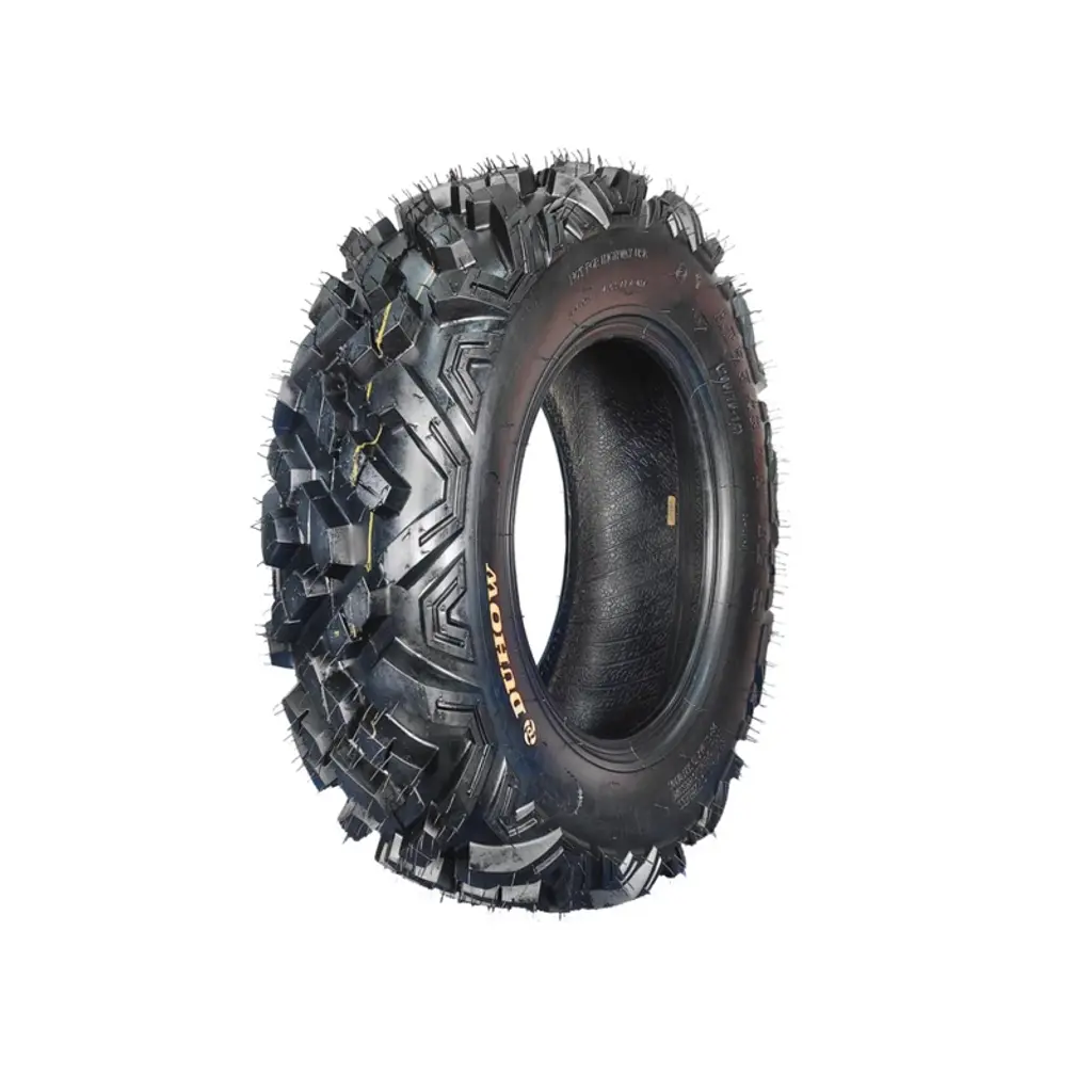 Upgrade your ATV or UTV with tires designed for all your adventures, from forest trails to desert dunes. The innovative tread design uses a tough compound to resist punctures and extend tread life, while angled shoulder knobs and biting edges help you corner and turn smoothly on unpredictable terrain. With a size of 26x9-14 and a tread depth of 0.78", these tubeless tires offer strong support with a maximum load of 395 lbs and a recommended 7" rim width. Whether you’re riding on hardpack, sand, or loose soil, the robust 6-ply construction ensures lasting durability and the traction you need for steady handling. Ride comfort is enhanced by staggered tread blocks that absorb bumps and impacts, giving you a smoother ride even when the trail gets tough. Optimized acceleration knobs and riding studs further boost your vehicle’s response, keeping you steady on forest paths. Thanks to advanced shoulder traction technology, these tires deliver superior grip and stability, so you can drive with confidence and focus on enjoying every journey outdoors.