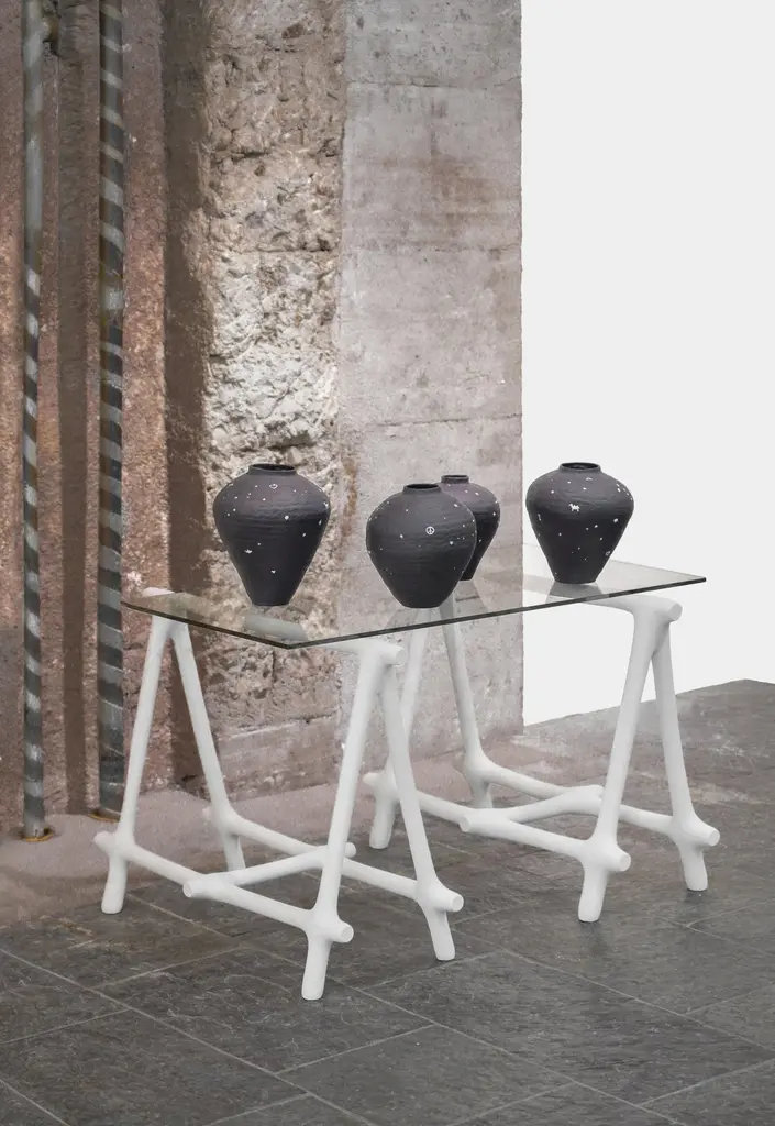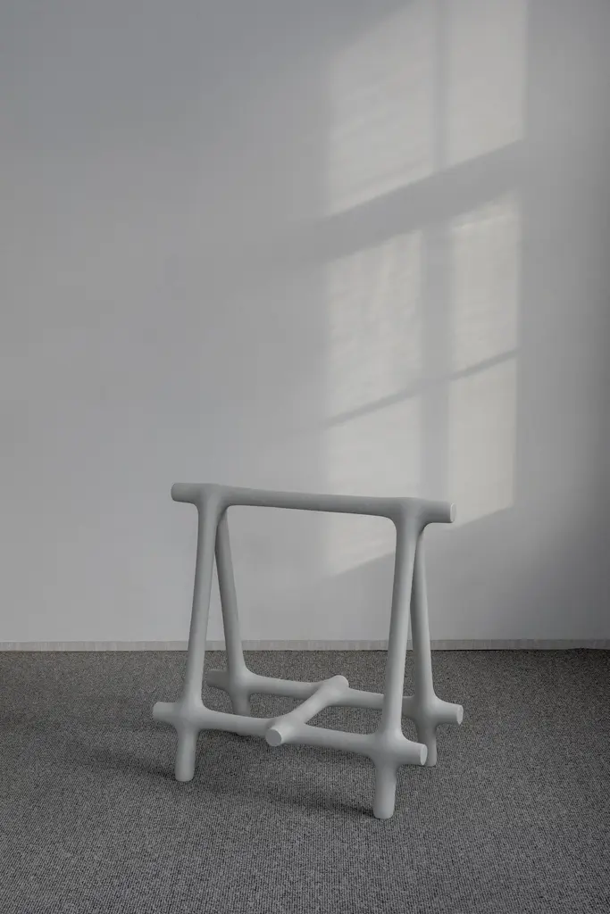 Set of 2 Basic Sand and Nylon Trestles I Limited Edition by Hot Wire ExtensionsDimensions: D 75 x W 43 x H 72.5 cm Materials: Waste nylon powder and responsibly sourced sand, copper pipe.9 kgTable top not included.Different dimensions, shapes, and colors upon request.All our lamps can be wired according to each country. If sold to the USA it will be wired for the USA for instance.Hot Wire Extensions is a young sustainable design brand, presenting a bold innovative manufacturing process.Exploration is central to our philosophy and the Hot Wire Extensions process is conceived with this in mind. Using waste SLS 3D nylon powder, a material that is currently not recycled, and inspired by the way a vine grows around a tree, we reuse the material to create organic bone-like structures built around a wire.We design and develop a diverse range of products, furniture and installations as well as bespoke commissions all characterised by our dedication to the mindful exploration of new material landscapes.
