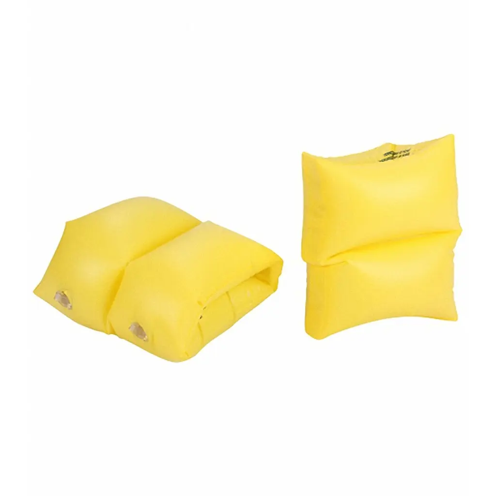 Get young an enthusiastic water-loving kids in the pool today! Teach children important water skills while building water and swimming confidence. These yellow armbands are the perfect tool for swimming. Features: Set of 2 swimming pool kids floaties The floaties are a bright yellow Each features dual-inflation chambers There is a tube design Quick and easy to get on and off Has easy inflate valves The floats read "Aqua Coach" "Skill School" By Swimline" Recommended for ages 2 years and up Dimensions: 8.5" high x 7.75" wide (each) Material(s): vinyl Note: This is not a lifesaving device; do not leave children unattended while in use; use only under competent adult supervision Note:Ships flat; must inflate
