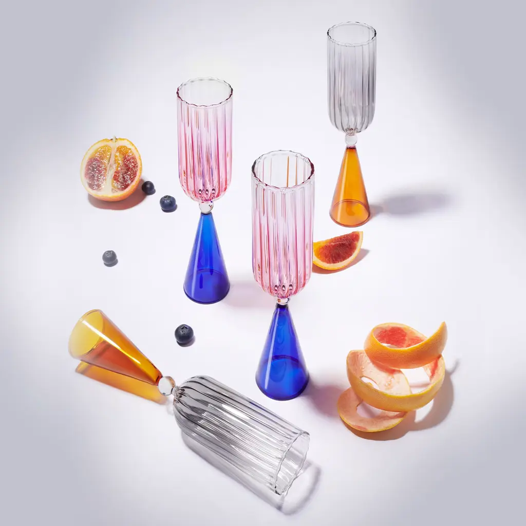 Set of 2 hand-blown borosilicate glass flutes. Please note that the Calypso collection is carefully handcrafted by skilled Italian artisans: every piece is unique.