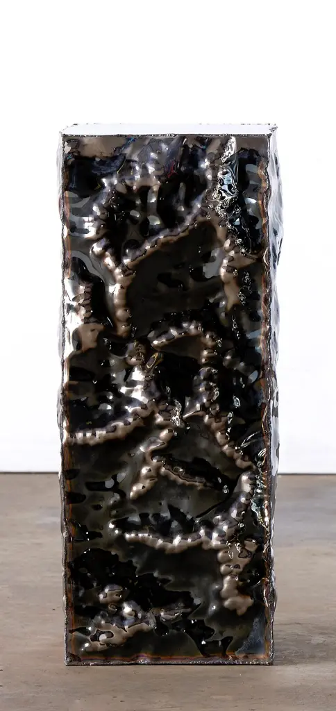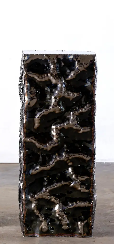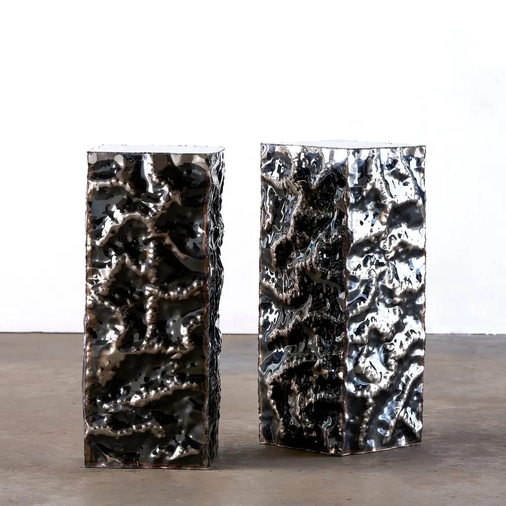 Set of 2 crinkle plinths by Michael Gittings StudioDimensions: D 30 x W 30 x H 70 cmMaterials: Mirror polished stainless steelMichael GittingsMelbourne based designer Michael Gittings aims toChallenge pre-conceptions around furniture, creatingcontemporary, yet unconventional pieces.Utilizing industrial processes Gittings welds, weaves, grinds,pours and grows metal into various functional forms.At the heart of Michael’s work is a desire to exposethe raw materials for what they are. Michael’s designethos shines through in the handmade, unique qualityof each piece.Pushing the boundaries of furniture design, Michael’swork balances both artistic and functional sensibilities.