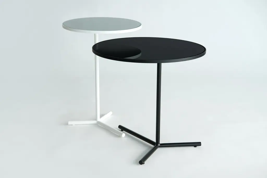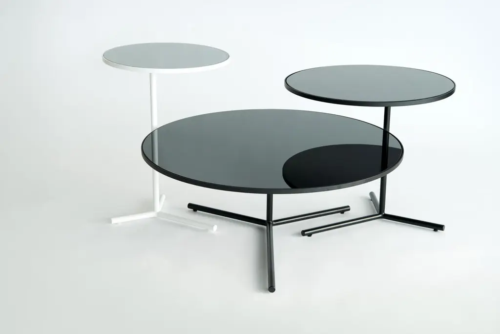 Set Of 2 Downtown Tables by Phase DesignDimensions: Medium: Ø 50,8 x H 45,7 cm. Small: Ø 38,1 x H 53,34 cm.Materials: Spandrel glass and powder-coated steel.Solid steel base available in flat or gloss black and white powder coat, polished chrome, burnt copper, or smoked brass finish, with spandrel painted glass top. Spandrel glass available in black, white, and gray. Powder coat finishes are also available in custom colors. Available in three different sizes. Prices may vary. Please contact us.The Downtown Tables are composed of three separate tables, intended to be used individually or in conjunction with one another. An offset leg allows for nesting these tables in various forms and compositions. The offset leg also allows the 15” diameter Downtown Table to be used as a desirable C-Table solution. The table’s spandrel glass top is housed in a jewel like surround, making for a sleek and polished presentation.Autodidact award-winning designer Reza Feiz has always been drawn to the strength in simplicity. Lured to Southern California by its inventive, creative spirit, he quickly discovered his true calling among the vast community of creators and artisans whose skills and ingenuity expertly transform imagination into reality.Inspired by Los Angeles’ iconic landscape and the compelling beauty of the places and spaces he encountered, he envisioned furniture, lighting and tabletop accessories, fabricating them from contemporary materials with the help of a tightly knit coterie of craftspeople.The resulting restrained yet revolutionary pieces have garnered enthusiasm from an international audience.He’s been lauded as “An American designer who influences world design”, a “Style Pioneer” and “One of a group of select young designers who represent the leading edge of discovery in design.” Architectural Digest’s Mayer Rus noted that his “wide-ranging collections make a strong case for the enduring appeal of restrained modern design.” Surface Magazine raved that he “imbues his work with a 21st-century edge. His astute sense of restraint keeps the designs relevant in a constantly evolving industry, without needing to subscribe to trends.”“Reza Feiz imbues his work with a 21st-century edge. His astute sense of restraint keeps the designs relevant in a constantly evolving industry, without needing to subscribe to trends.”