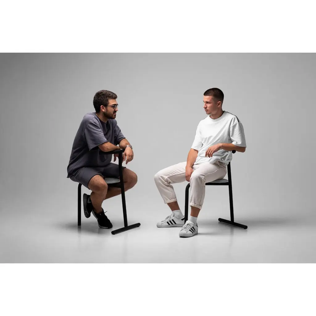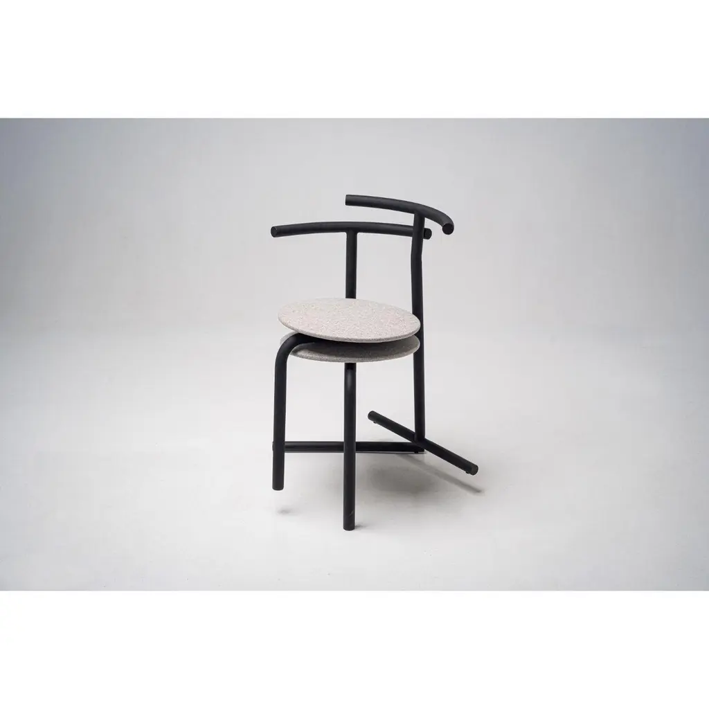 Set of 2 eater upholstered seats by OitoDimensions: D 50 x W 58 x H 78 cmMaterials:Powder coated steel, Fabric seat,Weight: 7.5 kgAlso Available in different colours.Suitable for outdoor use.Registered design. We've always wanted to create a chair with two legs. After long experiments with different sizes, angles, the cross section of the pipes, we found the golden mean.It's hard to surprise someone with something new these days.Every day we see dozens of new, but imperceptible things. The consequence of this is constant experimentation with design and construct.You will definitely remember this chair, constructive character.This is a chair for the city.We called this trend “fast furniture.” For fast life.What does that mean? The chair is well suited for various public spaces, small cafes or art galleries, cafes.Sat down - let's eat - got up.Oitoproducts is a young Ukrainian brand from Kiev. We want to change furniture trends and add more fashion and value to the product.Our mission is to make furniture part of thinking fashion, not just a daily item. We spend a lot of time on visual and technical beauty!Each product of our line is complex. We value manual labor and try to make every detail meaningful and quality.We support local manufacturers and create new items together. At the moment, Ukraine is not a big industrial giant, but there is a highlight. All our items are the result of manual labor, and it is always warmer and more emotional.Until recently, the world did not know Ukrainian design, but recently everything is changing.There are many original designers from Ukraine who develop and collaborate with many world designers.Ukrainian designers are already a large community that is changing post-Soviet realities into well-thought-out semantic spaces.Ivan Voitovich, the founder of oitoproducts and his team is a full fan of the creation.We are building a new brand that is changing our reality. We want our environment to give us more positive emotions and experiences.