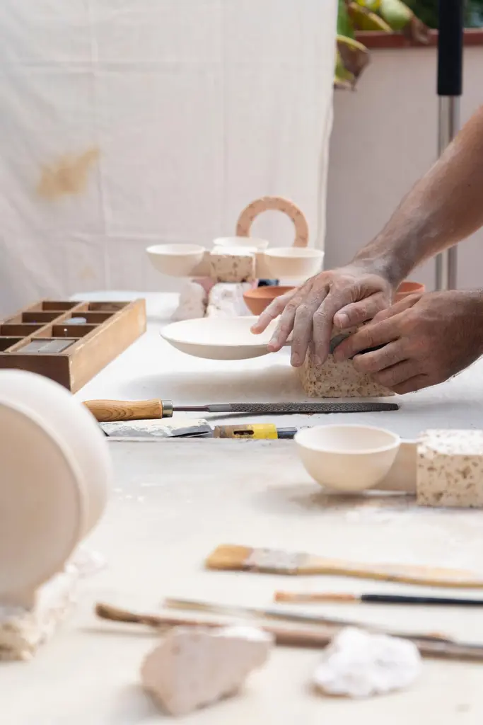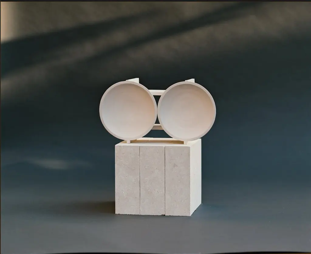 Set of 2 Gemini objects Cosmos awarness program by TurbinaDimensions: D31 x W12 x H17 cm eachMaterials: Slab Building ClayInstrumentation generates information about the Cosmos not only from visible light, but also from radiowaves and microwaves, infrared and ultraviolet light, X-ray and Gamma rays. Universe is exhibiting powerfull phenomena and processes that function on planes of reality well outside of our ordinary frame of reference.Through the ages, developments in instrumentation have affected and often stimulated changes in philosophical perspectives releated to space.Cosmos Awarness Program is a space object taxonomy project.Unique pieces. Carefully handcrafted in Mayolica and Chamotte fireclay, Alba shell Limestone, 220v Motor and chrome plated.Turbina is an art and design studio located in Barcelona and focused on the creation of pieces, objects and machines that revolve around the concepts of time and movement.Through our work, we try to give other answers to the logical and trascendental dificulties the very IDEA of time presents. We respect the materials own language, we select them for they’re implicit symbology and we explore they’re possibilities comprehending they’re nature. Manufactured by ourselves in a slow and thorough process.