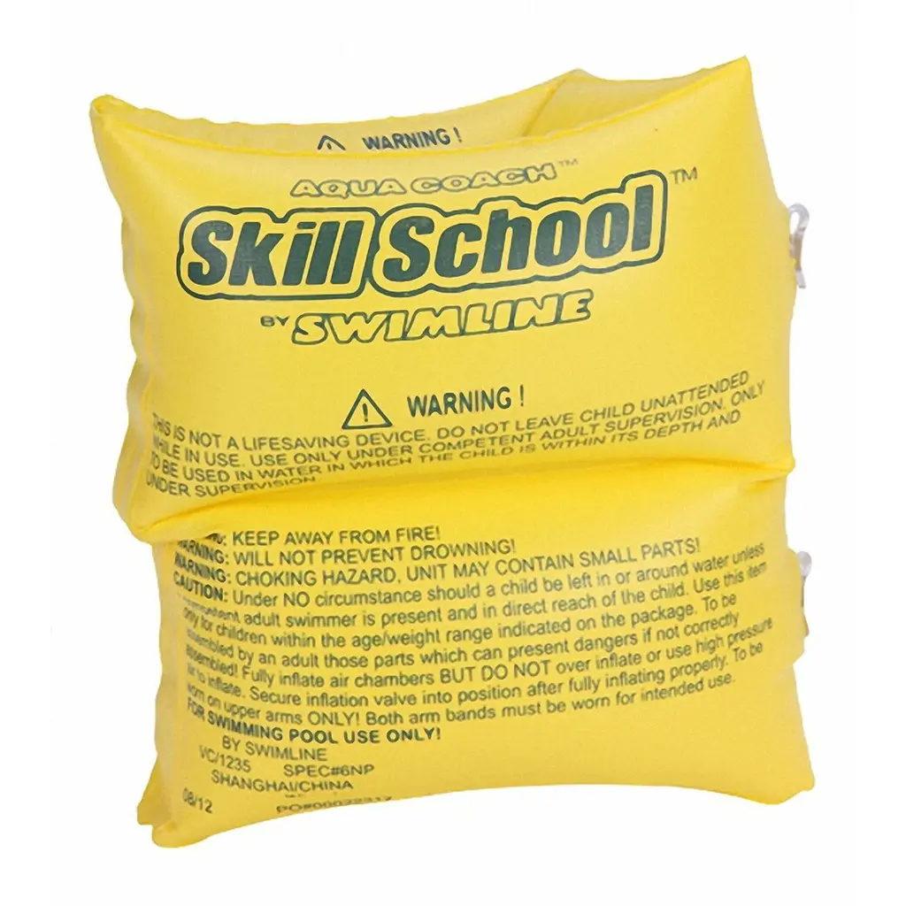 Summer is the best time to learn how to swim. These yellow water floats will be the best investment you'll make for your little one. Introduce your child to the water in a fun and safe way with these arm floats. Features: Children's water arm floats The floats are a bright yellow Features multiple safety chambers There is no restricted arm movement Can be used by themselves or with other learn to swim items ΓÇô sold separate These floaties are highly recommended by swim instructors Recommended for ages 2 and up Material(s): vinyl
