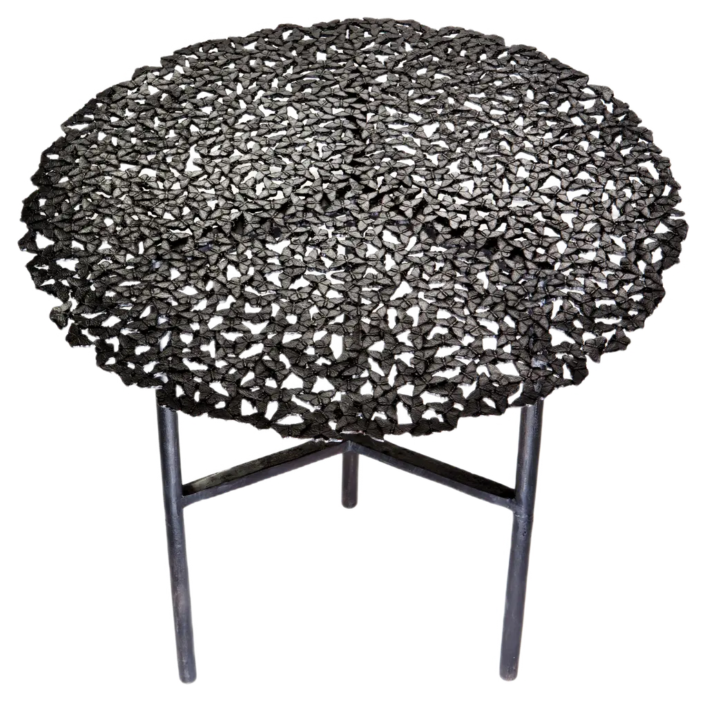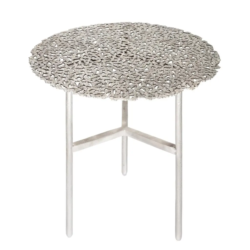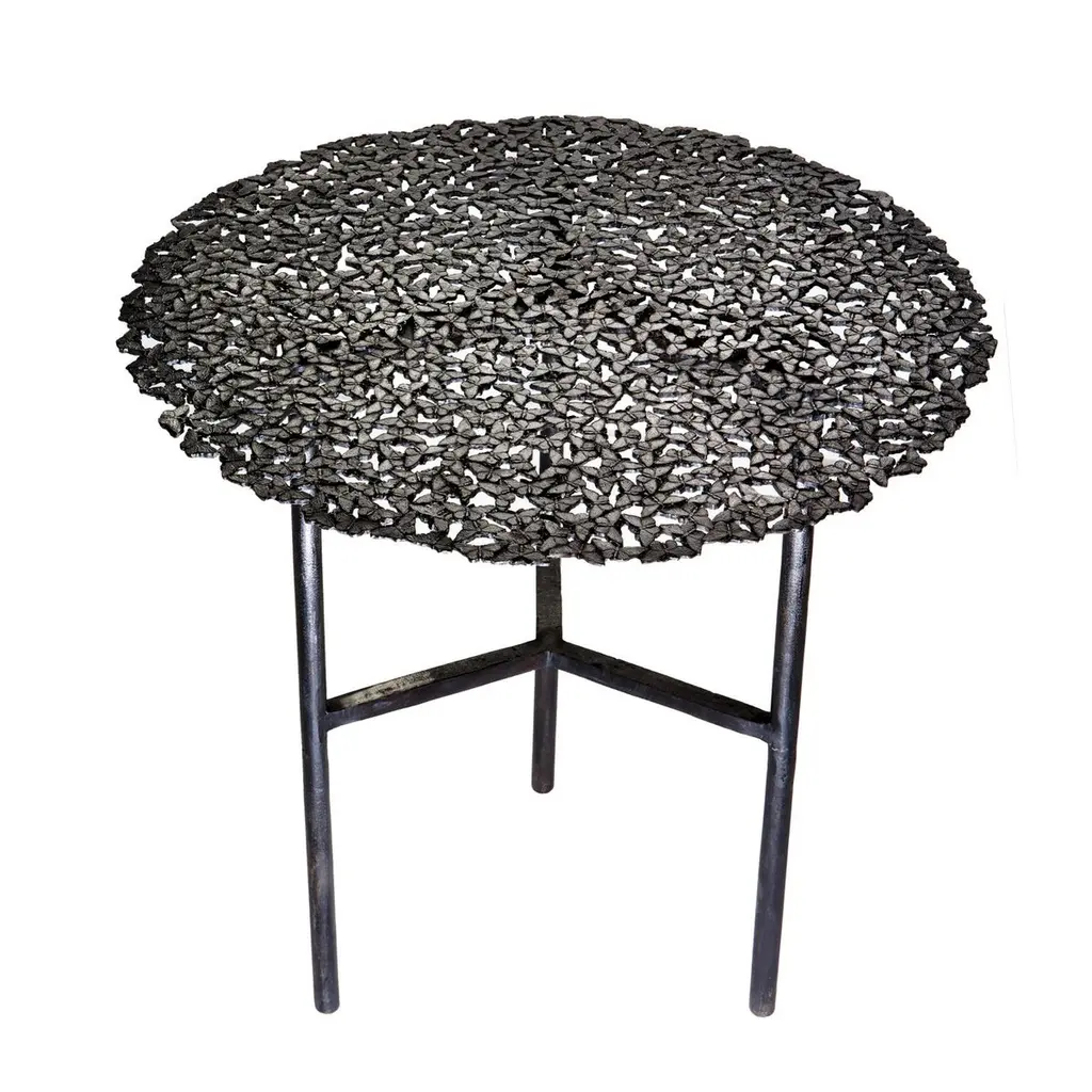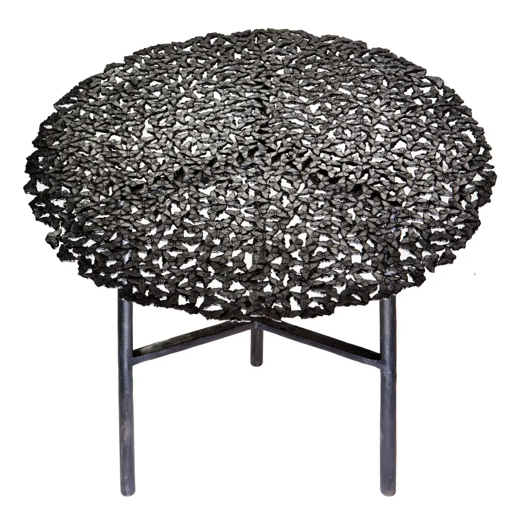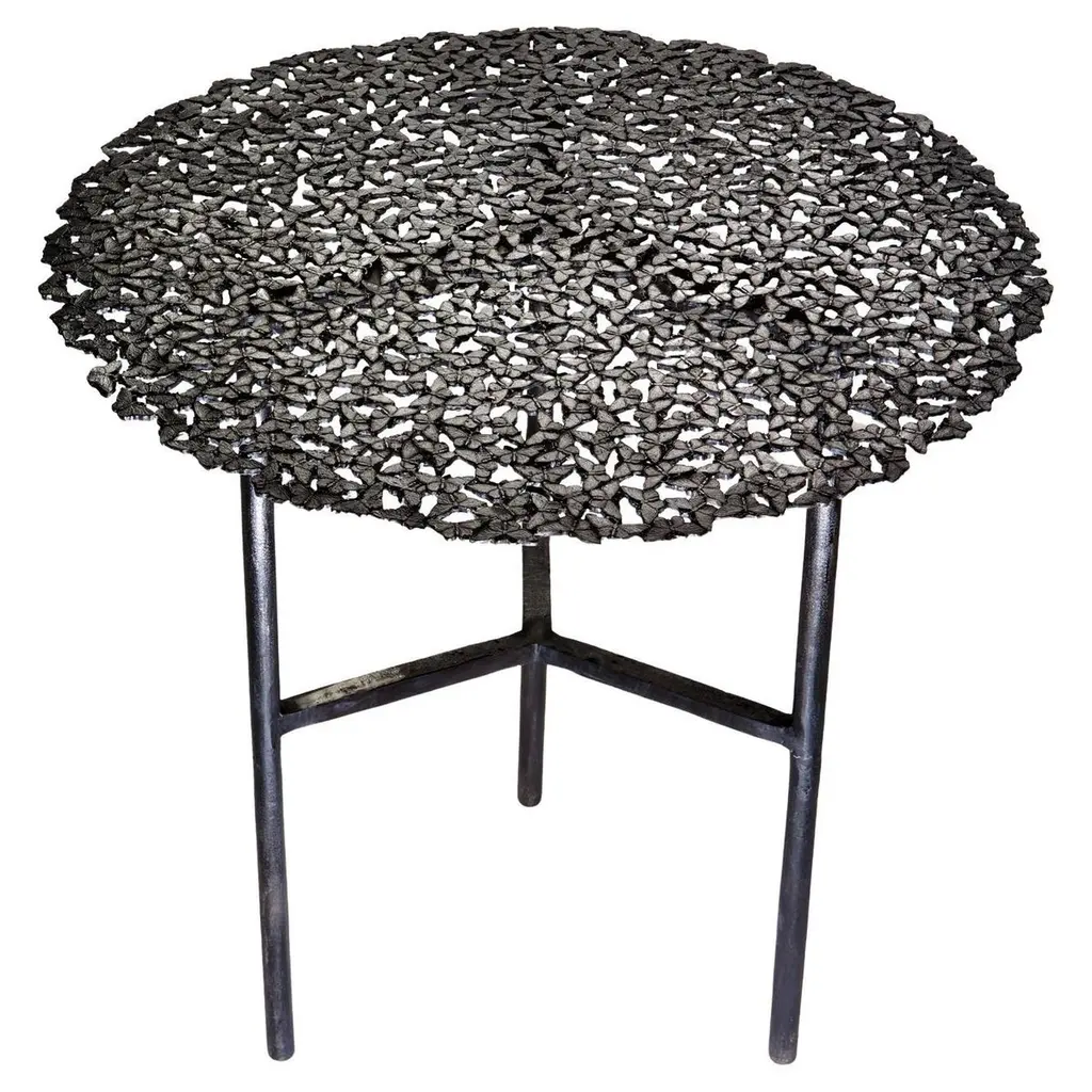 Set Of 2 Jean Bronze Side Tables by Fred and JuulDimensions: Ø 60 x H 54 cm.Materials: Black patinated and white bronze.Dimensions may vary. Available in black patinated or white bronze finishes. Custom sizes, materials or finishes are available on request. Please contact us.A swarm of butterflies as delicate as a lace table cloth forms an everlasting table top in lost wax cast brass or bronze. A sculptural table for both indoor and outdoor use.Fred&Juul, short for Federico Minarelli and Julie Janssen, are two architects who decided working as architects isn’t for them. It was when designing custom furniture for their clients and developing it with the amazingly skilled local artisans that they truly found joy in their work. So, in 2012 they decided to solely focus on that and launched their first lighting and furniture collection. With the exception of the renovation of the old Tuscan farmhouse that would become their home and studio, a labor of sorrow, but mostly love (see the result on the press page!).What sets them apart is how they see and use their materials of choice: bronze, brass, wood and stone. Their designs value the inherent nature of these materials and how they are meticulously crafted, like the grainy, clouded surface of their Raffaele light in sandcast brass or the juxtaposed Oak grains in the marquetry of their Maurits table. Starring all these aspects in the story of a piece, is what makes it unique and last.Over the years they have increasingly worked with interior designers on custom pieces for high end projects all over the world, thanks to their attention for detail, refined aesthetic sense and collaboration with the best highly specialized craftsmen Tuscany has to offer.