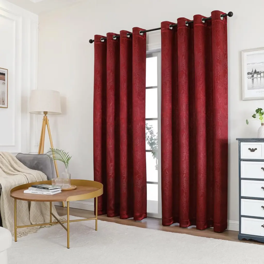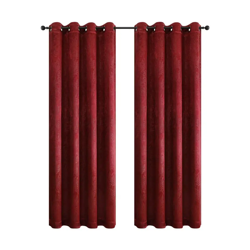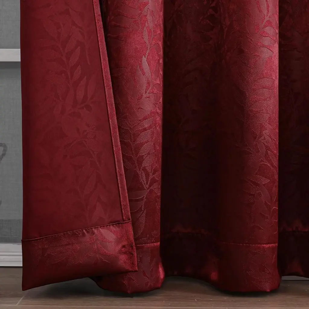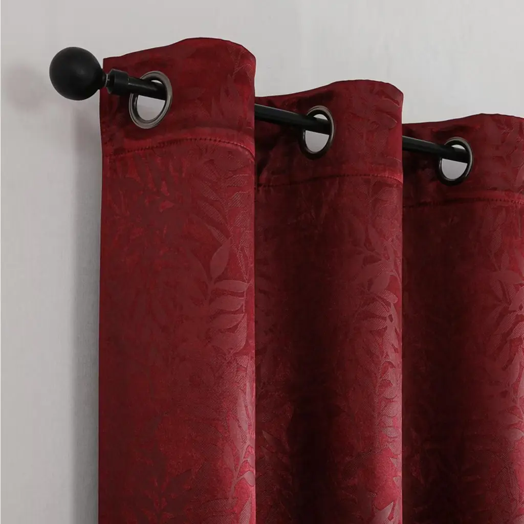 Set Of 2 Leeds Floral Leaves Embossed Light Filtering Grommet Top Window Curtain Panels - Kate Aurora - Burgundy