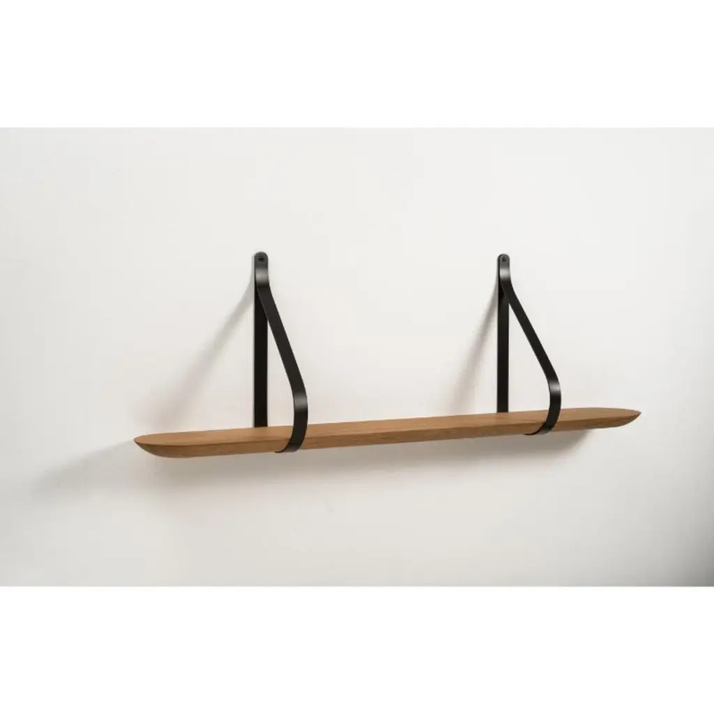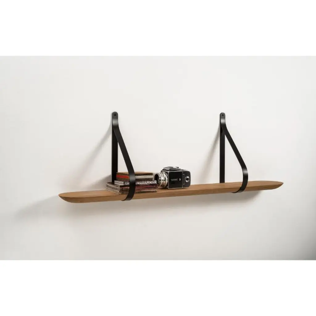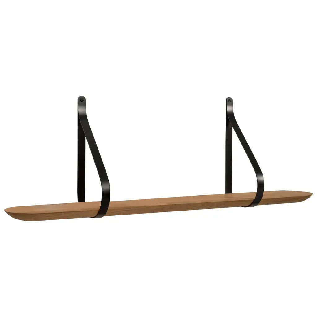 Set of 2, Libra Shelves 120 by Colé Italia with Martinelli/VeneziaDimensions: H.42 D.20 W.124 cmMaterials: Shaped solid oak wall shelf; black lacquered iron stirrupsAlso available: Libra Shelf 60.A minimalist shape with a strong aesthetic, Libra plays with the concept of balance, displacing the observer. “The metal support wraps the convex base of the wood, deforming and creating a material illusion: at first impression, it resembles a leather band. The image that inspired the project is, in fact, the traditional book-holder leather belt used by our grandparents, before the advent of the folders. Made of solid oak and supported by a wrought iron ribbon. A hidden metal plate welded to the support structure, makes the shelf-stable and durable.Colé is a young Italian design brand, with a high-end production 100% made in Italy. Born from the experience of Matteo De Ponti, architect, who grew up in one of the most outstanding Milanese design families, and the artistic sensibility of Laura Macagno, degree in Economics and passionate of art and design. Our Mission is to create design icons, beautiful and comfortable pieces that can Stand the test of time, furnishing houses of international and sophisticated clients, and realized with craftsmanship, thus unique. “We love objects which own deep roots, excellent quality, and a strong evocative power. Archetypal forms dressed with new beauty without losing their classical composure”.Our expressive research is inspired by the utopian force of Italian eminences grises architects and designers of the ’50s, the Scandinavian design, the Bauhaus, ethnic handcraft and houses of famous writers of the XX century, all different as a style but united by the intense soul of those who worked and lived there.