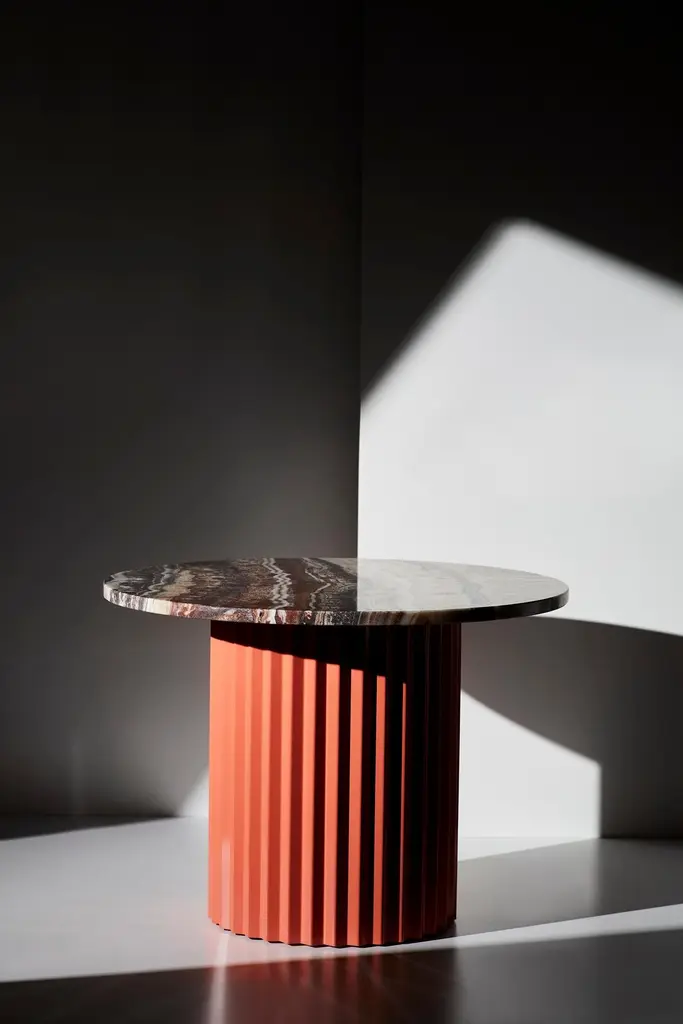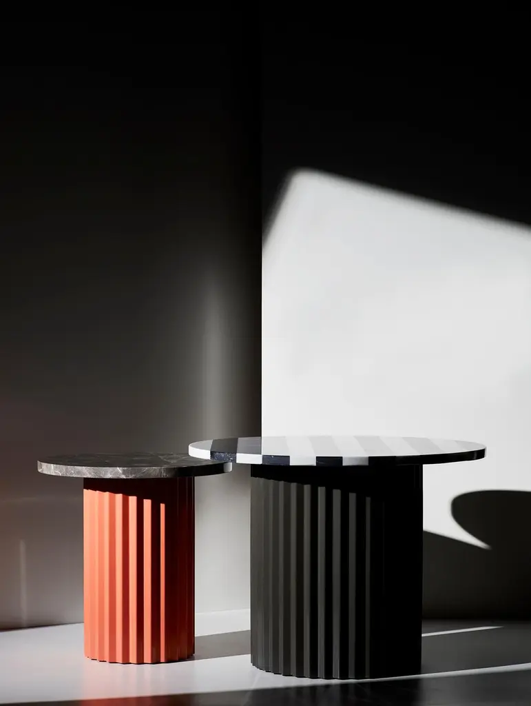 Set of 2 marble tables by Lisette Rützou.Dimensions:D 40 x H 41 cmMaterials: Marble, oak tabletop, brass column. Lisette Rützou’s design is motivated by an urge to articulate a story. Inspired by the beauty of materials, form and architecture, each design is an independent statement - contemporary functionalism with a feminine touch. Each piece tells an individual story – an embodiment of emotion ? “I hope with my design to create a reaction, a feeling beyond beauty and fine lines. To me - designing is personal – color, movement, sound and scale – a universal language essential to my approach.".