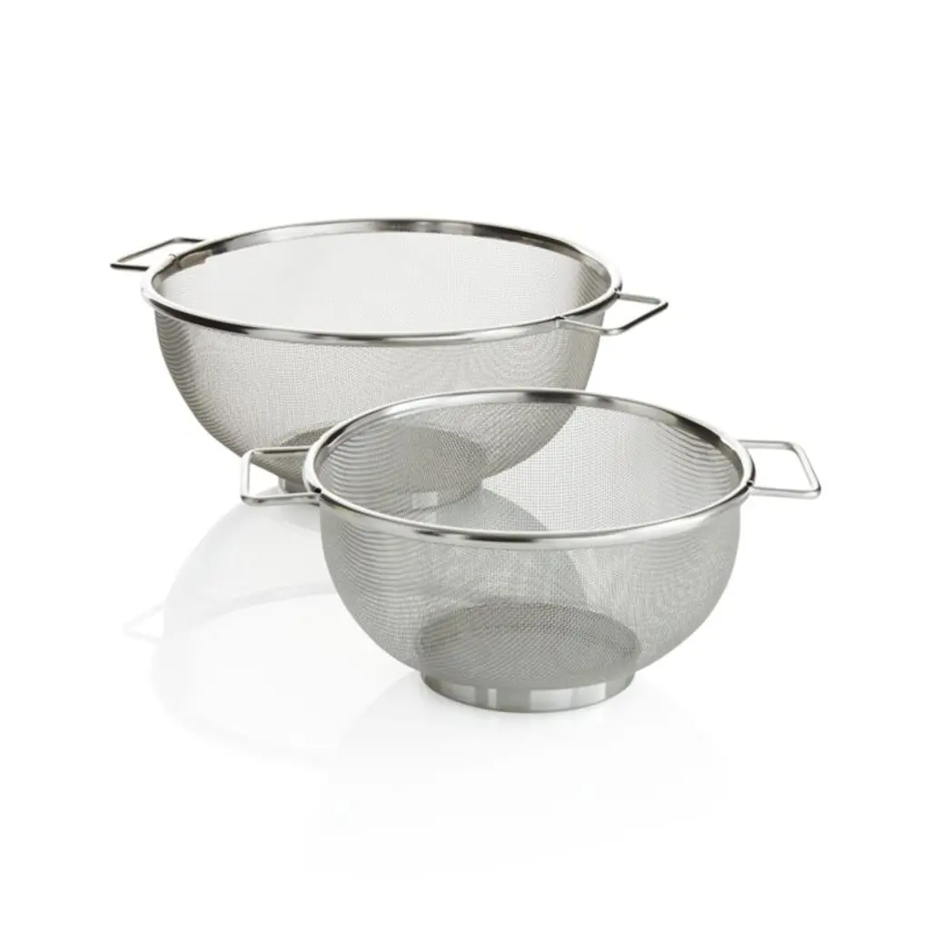 Just the right thing for draining pasta, or washing fruits and vegetables, mesh colanders have stable bottoms and easy-grip handles. Stainless steel mesh construction keeps even the smallest foods from slipping out.