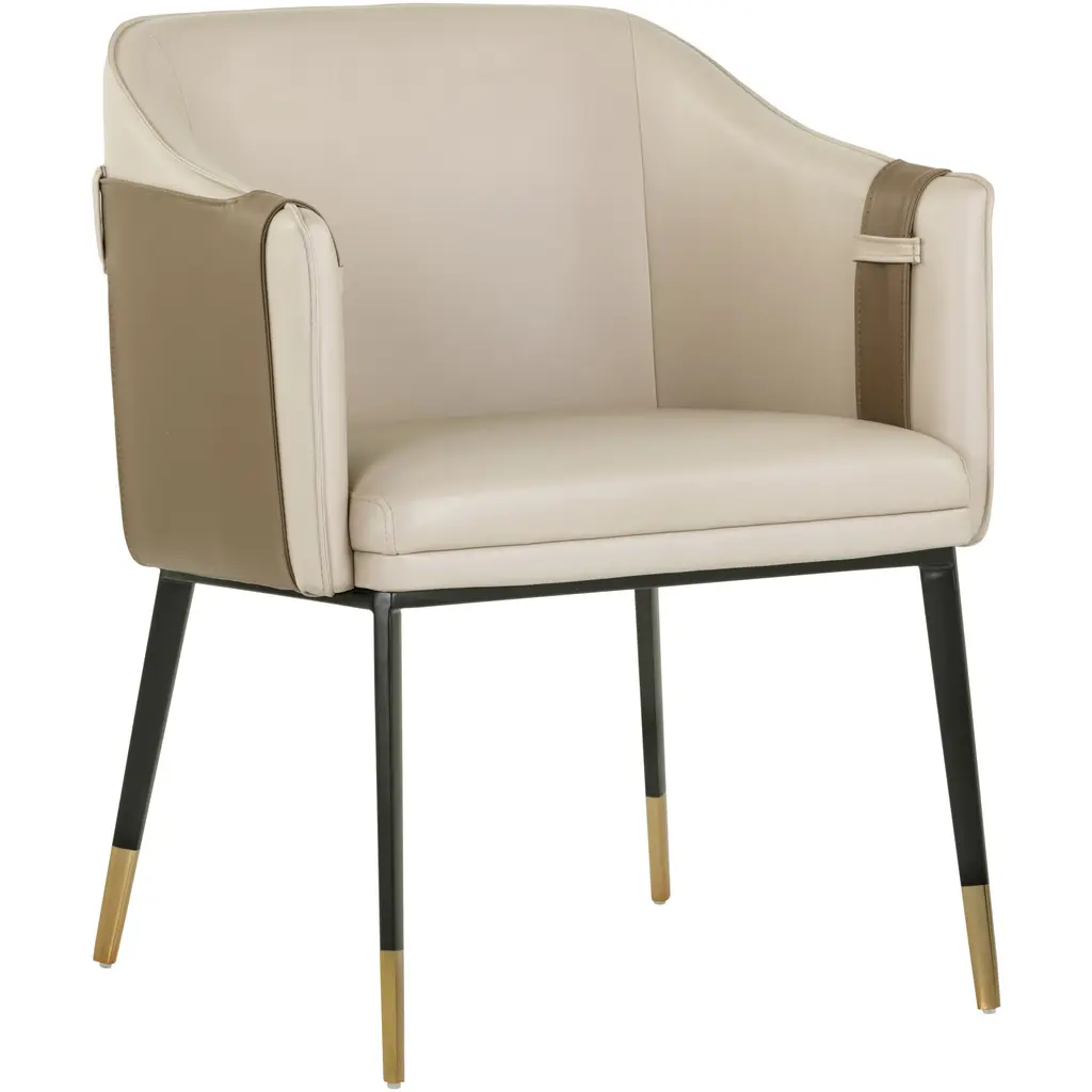 Set Of 2 Olympia Beige Leather & Golden Metal Chairs