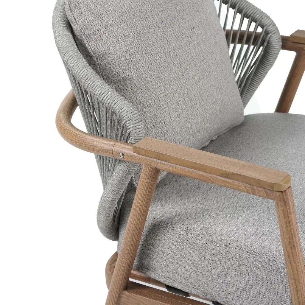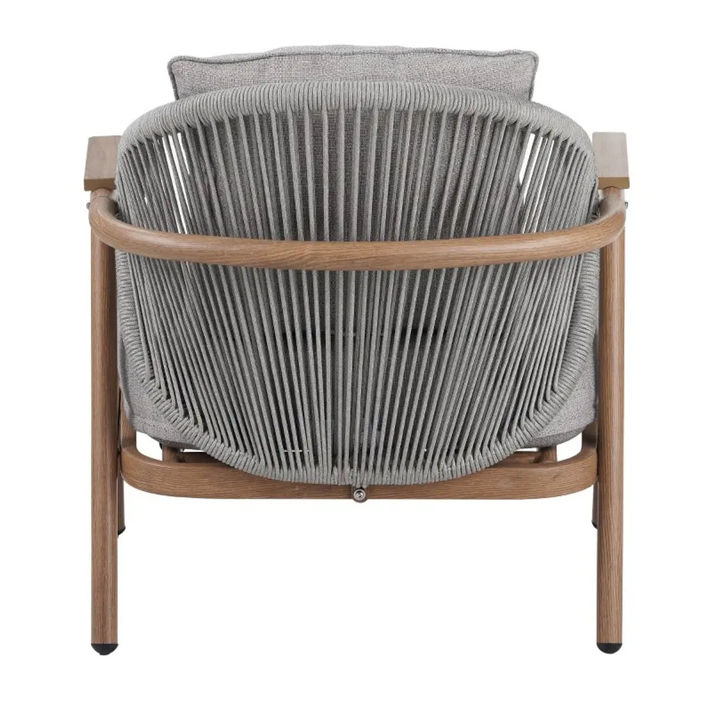 Set Of 2 Outdoor Club Chairs With Taupe Cushions,rope Patio Club Chair With Iron Frame And Wood Armrests,rope Backrest Garden Lounge Club Chair-koiai