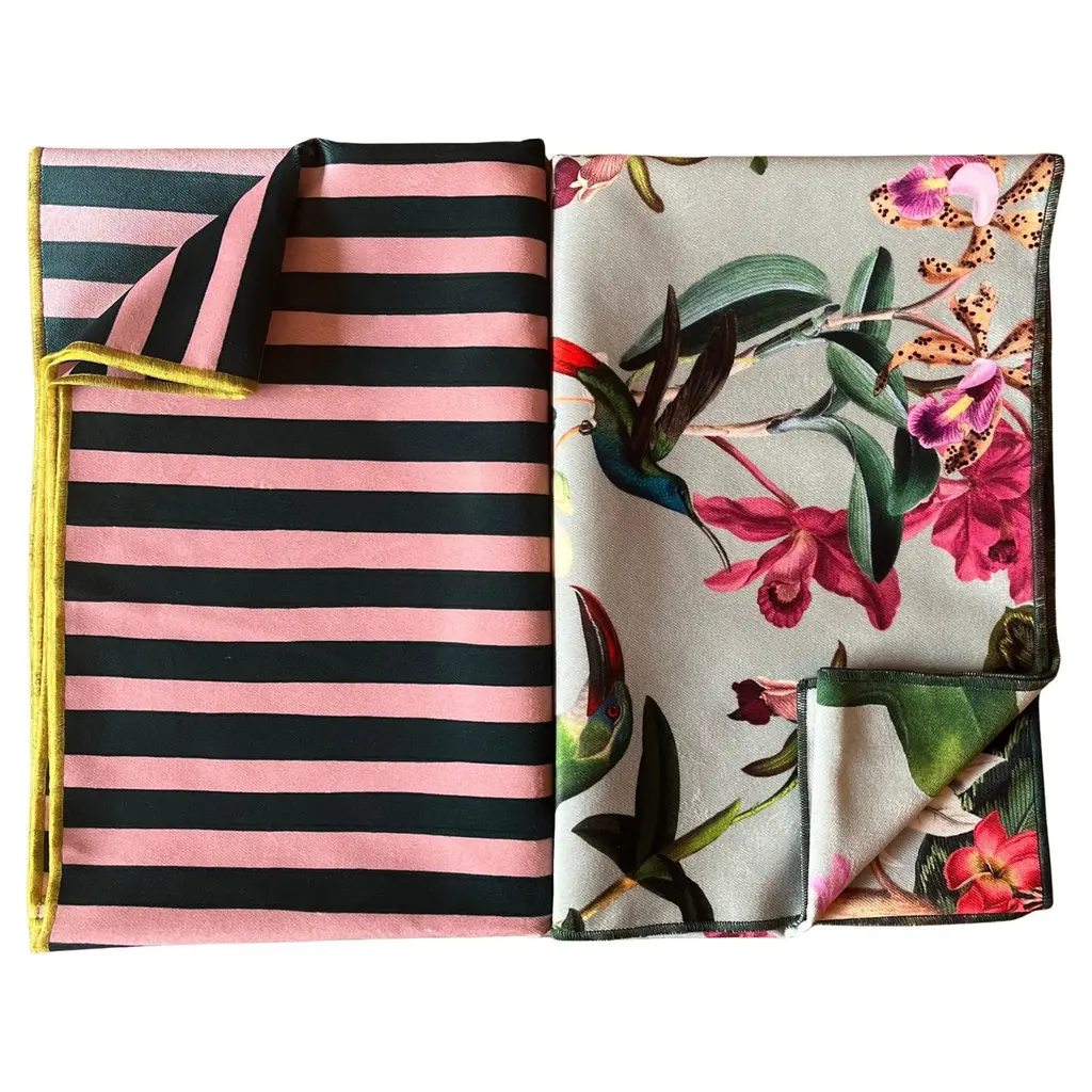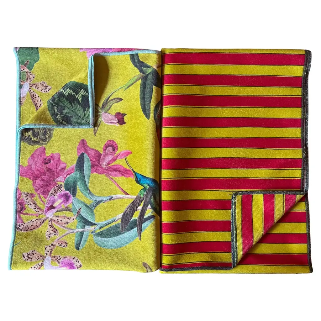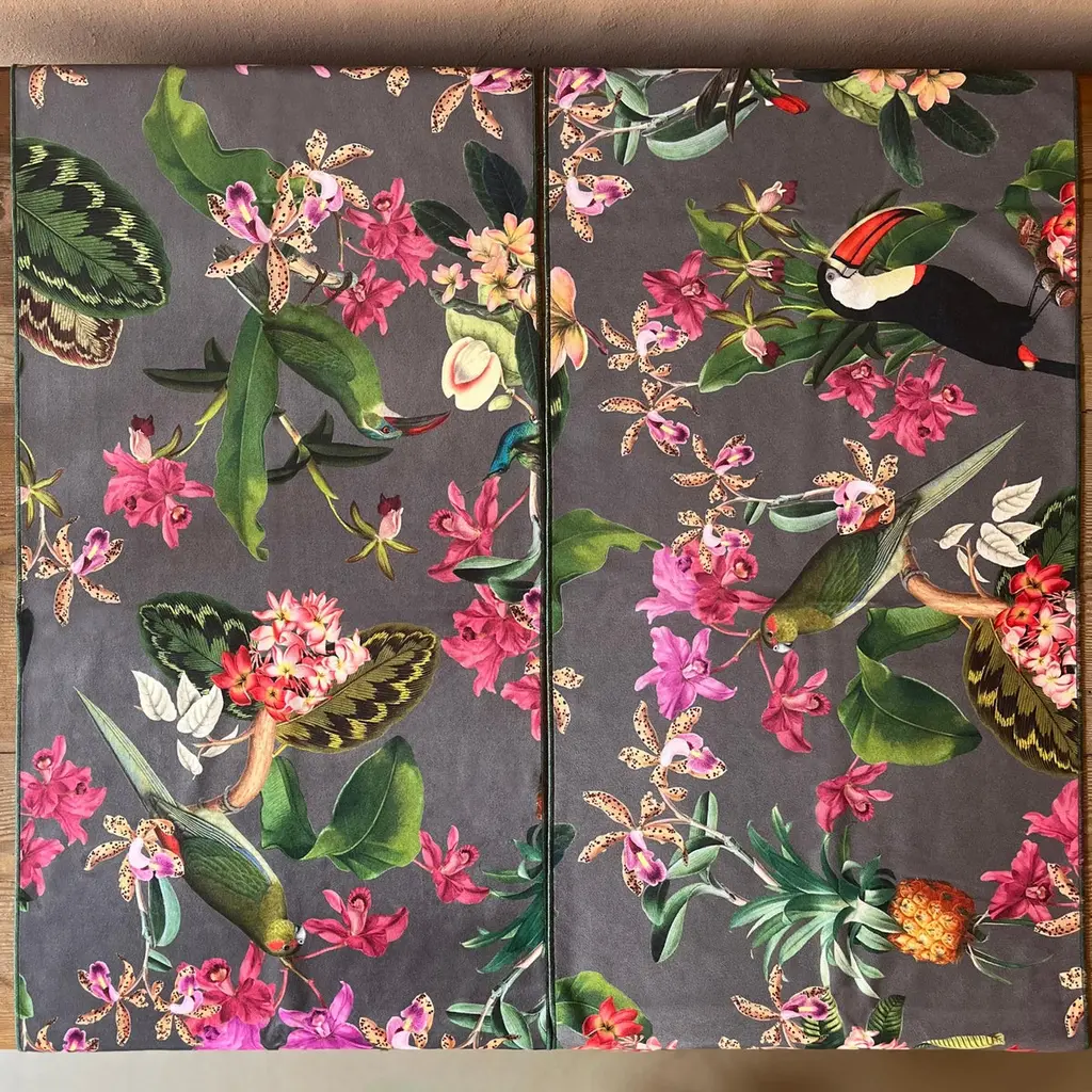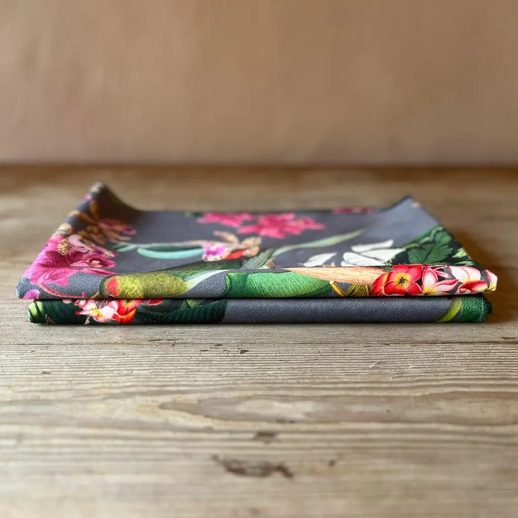 Add a touch of elegance and practicality to your table with our Polyester Velvet Runners, an expression of Italian craftsmanship. Measuring 45x140 cm, they offer a splash of color to the table thanks to the refined pattern inspired by the nature of Brazil on a dark gray background. This Runner can be machine washed at 30°C and does not require ironing, providing great convenience. Each piece is printed and handcrafted in Italy, ensuring quality and attention to detail.Perfect for any occasion, from everyday to more formal dinners, it combines elegance and practicality.Available in different color combinations and patterns to suit your unique style.