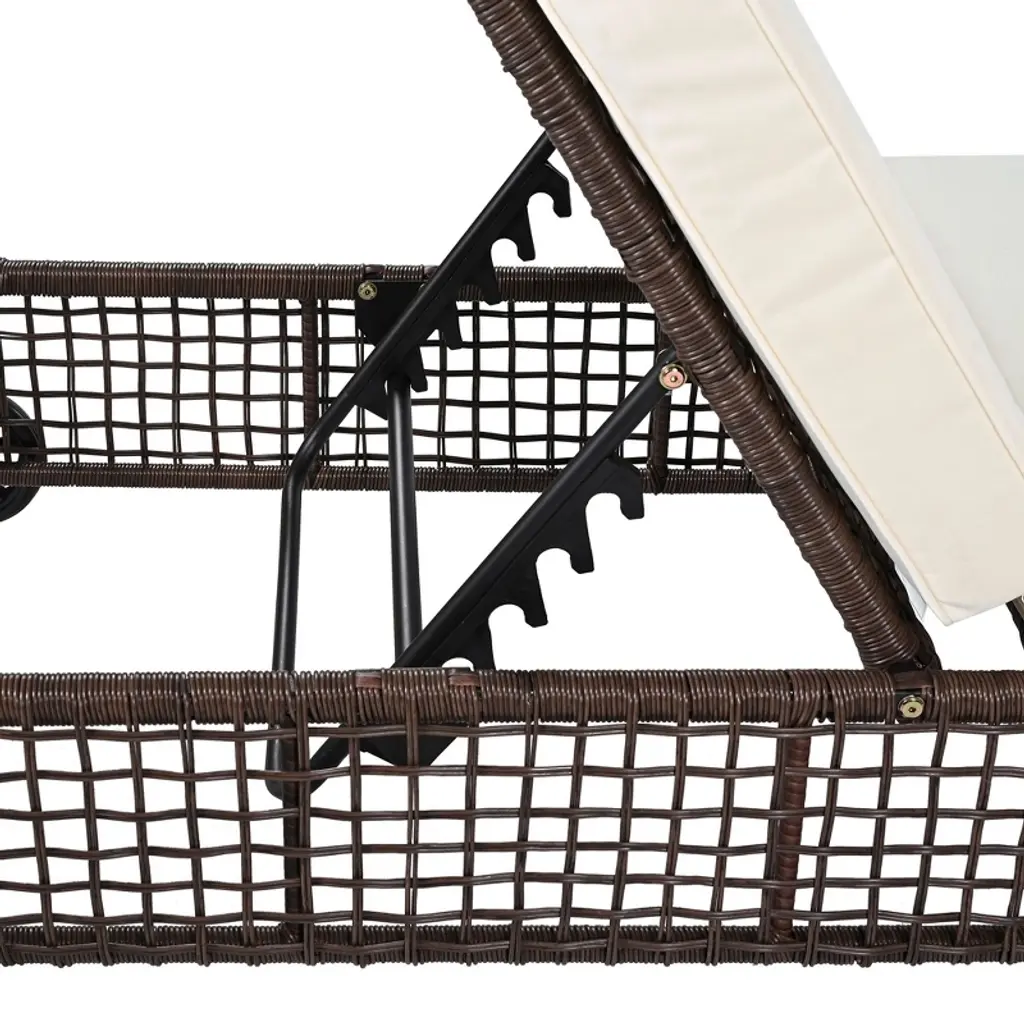 Set Of 2 Rattan Lounge Chairs: 5-position Backrest, Cushions, Wheels For Pool/backyard/garden
