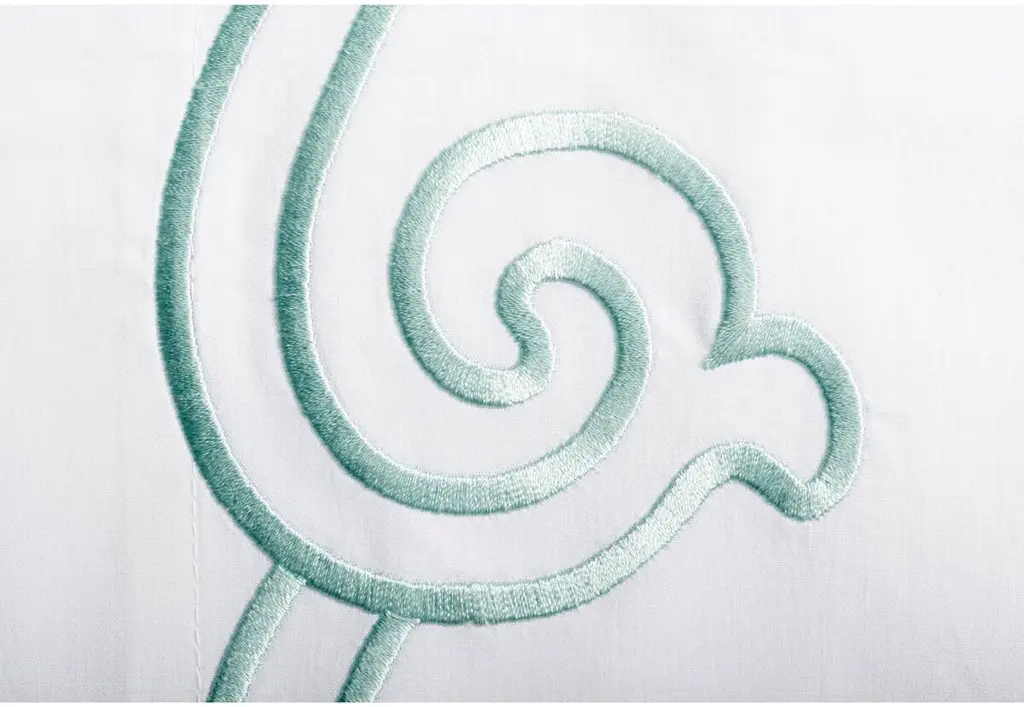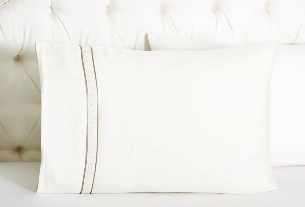 Embroidered flourishes add a fanciful finishing touch to this pair of exquisite Egyptian cotton percale pillowcases, woven in Italy and artfully embroidered in the USA.