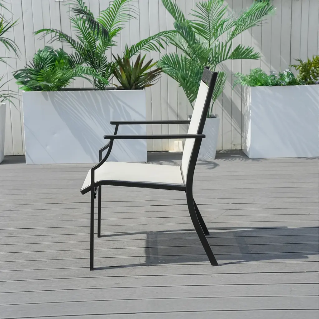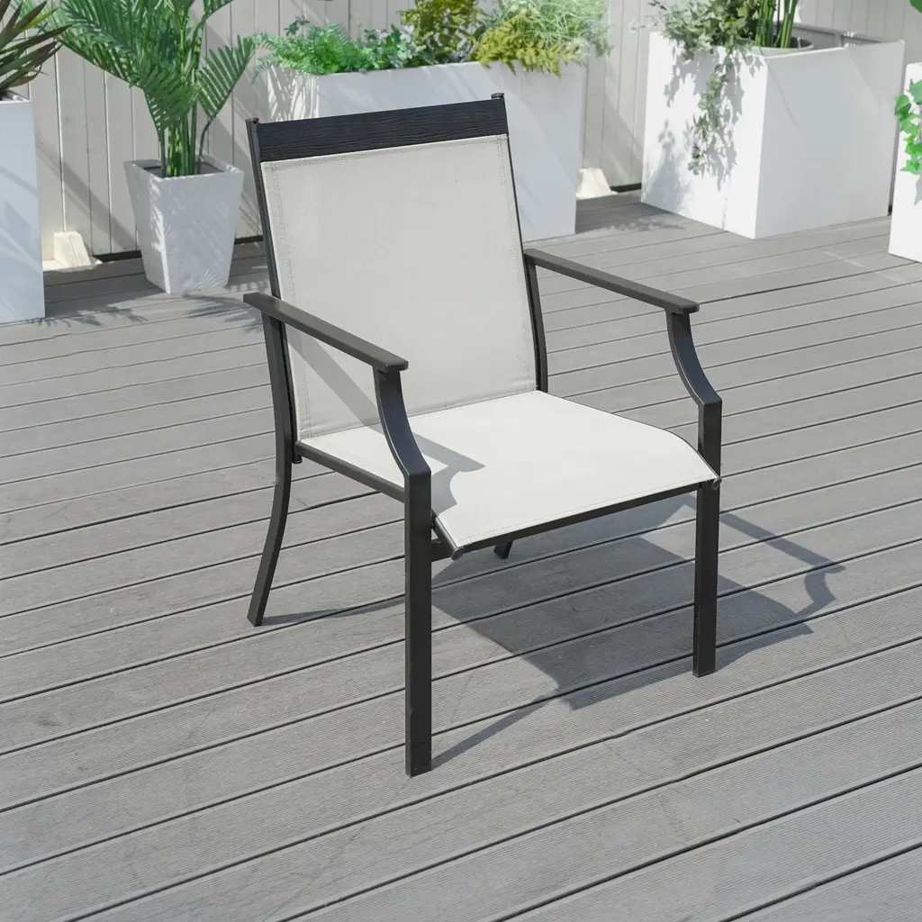 This set features two all - iron detachable single fixed chairs with Textilene seats, designed to bring both durability and style to your outdoor spaces. The Textilene material used for the seats is highly resistant to stains. A simple wipe with a damp cloth is usually enough to clean off any dirt or spills, saving you time and effort in maintenance. Textilene is known for its excellent breathability. This means that even on hot summer days, you won't feel sweaty or uncomfortable while sitting. The breathable fabric allows air to circulate, keeping you cool and relaxed. The all - iron frame is built to last. It can withstand various weather conditions, including rain, wind, and sunlight, without rusting or deteriorating easily. This makes these chairs a reliable choice for long - term outdoor use. The combination of the sleek iron frame and the Textilene seats creates a modern and stylish look. Features:Specifications:
