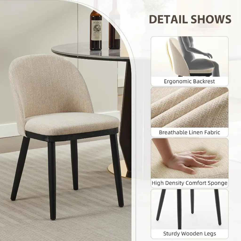 1Modern upholstered dining room chair,a stylish and comfortable addition to any dining room. Dining chairs with wood legs exude elegance and sophistication, making them the fine choice for families and business places alike.Soft cloth cushion, sponge filling, comfortable sitting, high resilience.NOTE:1. Due to the color deviation of the computer display, there may be slight color difference between the real object and the picture,Thanks for your understanding2. Due to manual measurement, there may be errors of 1-3cm, please forgive me3. The product requires simple assembly. If you have any needs, please contact us in time and we will help you