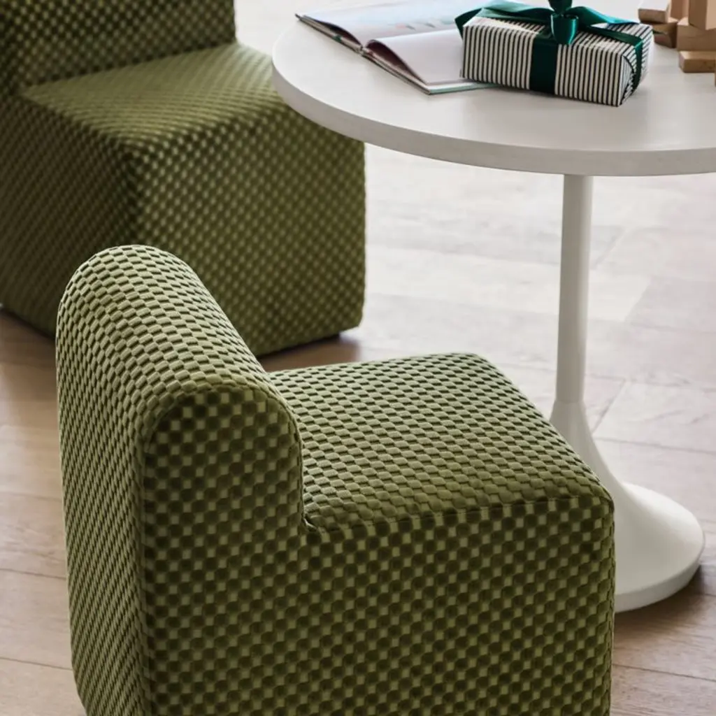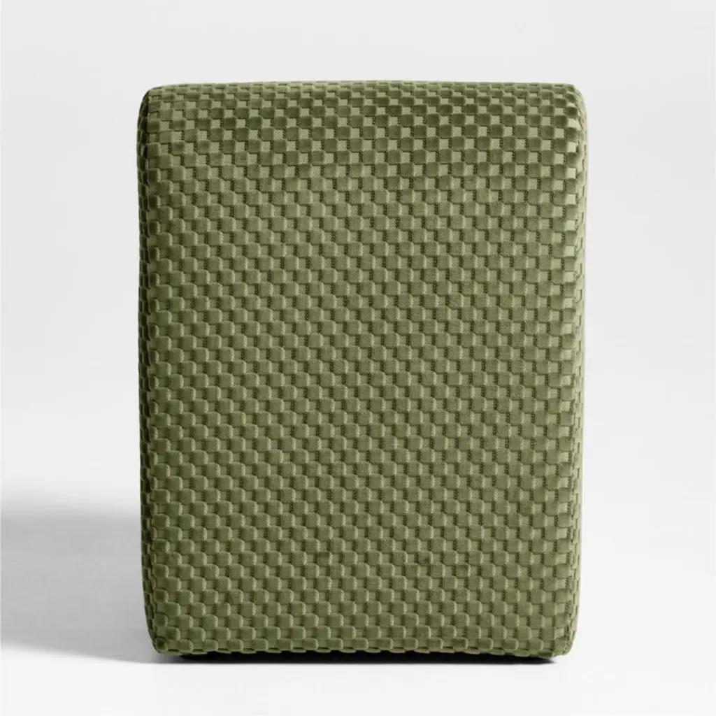 We had some fun reinventing a classic silhouette for kids' play spaces. The result? Our Wellie Slipper Chair. First, we shrunk the proportions to create a comfy, supportive seat at a just-right height for kids. Then we upholstered it in a luxe but playfuland thankfully, stain-resistantcheckered velvet. The chair's modern lines and moss green pattern have plenty of personality, but it's also subtle enough to slide gracefully into any room.