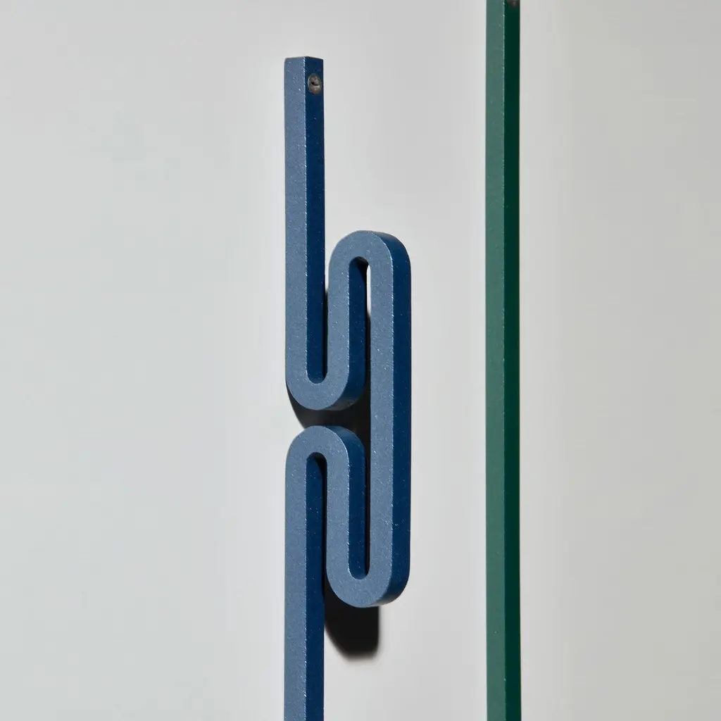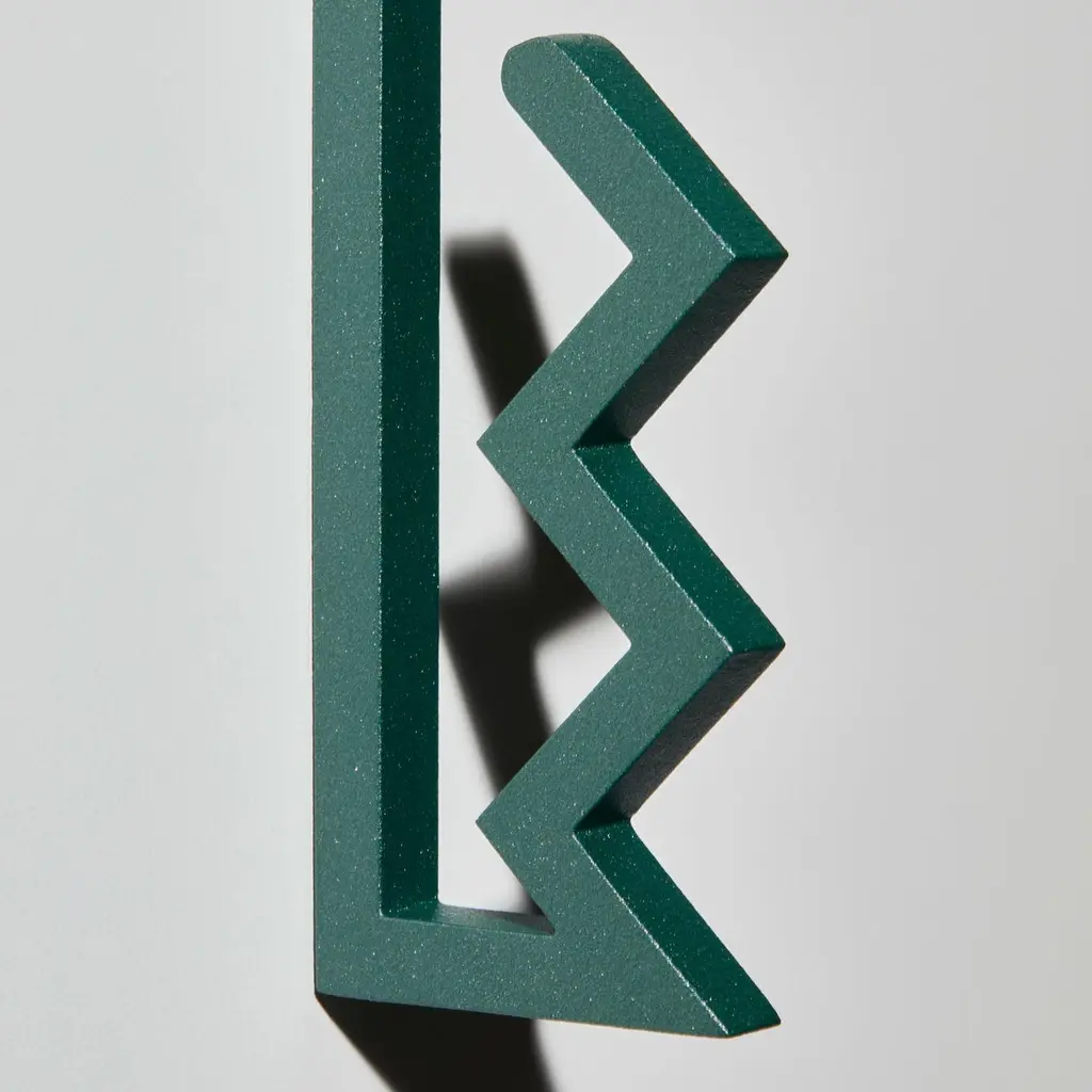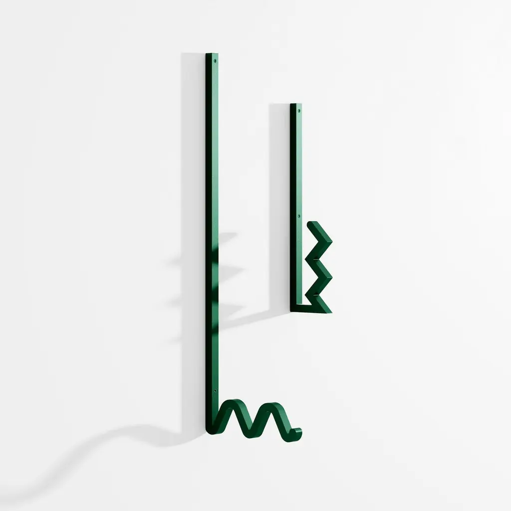 Set of 2 zag coat hanger by Bling Desing Studio.Dimensions: H 26,5 x L 6, H 41 x L 14,2.Materials: green textured metal.Zag is a family of coat hooks whose shapes are inspired by barrettes and pins. Each Zag is like an imaginary letter that invites you to hang a hat, a bag, or a piece of clothing. Coat hooks work particularly well in groups to create graphic compositions with shadows mingling on the wall.