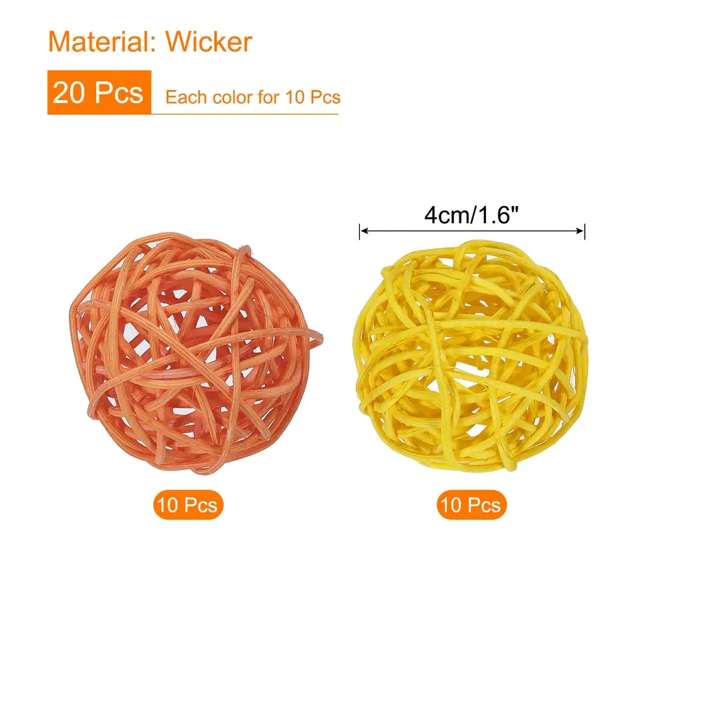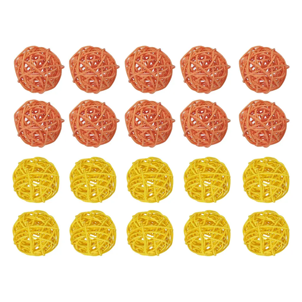 Set Of 20 Pcs Wicker Rattan Balls 1.6 Inch Rattan Decorative Balls - Yellow,orange