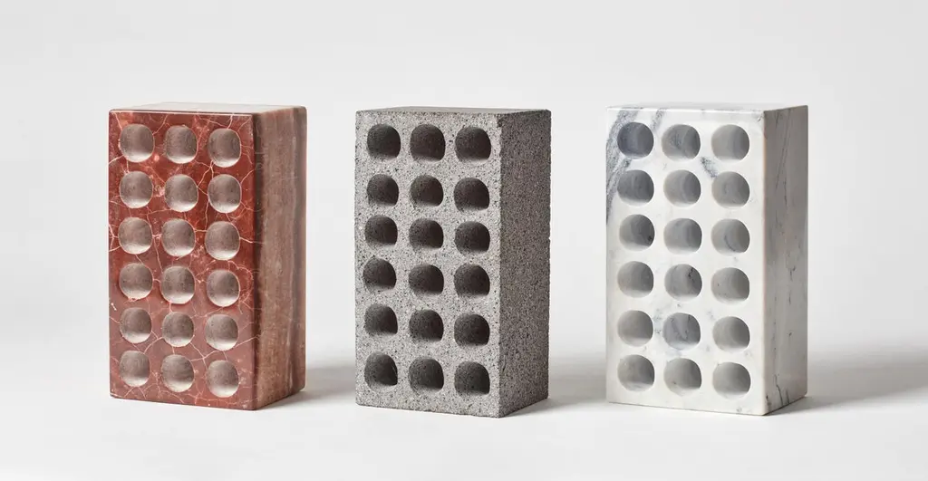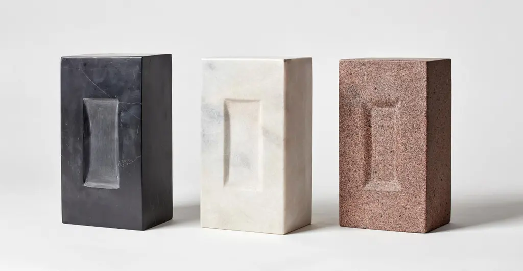 Set of 3 Bricks by RF StudioDimensions: W 12.5 D 9 x H 23 cmMaterials: Andes StonesAlso Available: Other finishes available.The brick is a generic constructive element that constitutes part of the urban imaginary. In Peru, moreover, its image is linked to the phenomenon of migration from the countryside to the capital that began in the 1940s and involved new constructions of collective space on the outskirts of Lima, new urban centers in the different regions of the country and new forms of self-construction of housing. Based on the concept of constructive material, Bricks suggests the question of whether there is continuity between the materiality of the natural territory and the materiality of the contemporary urban Habitat; and whether it is possible to recover the relationship with the diversity and particularity of each of the ecosystems we inhabit. The pieces pose the fragile balance between the processes of material transformation within nature and the systems of production, extraction and construction of our society.ESTUDIO RF is located in Lima, Peru. We are dedicated to the research of the contemporary Habitat and natural environments in the Peruvian context, seeking to dissolve established limits between them. Our multidisciplinary team is conformed by visual artists, architects, traditional artisans, performers, designers, actors and writers. We regard art as an open field that functions like a hub that establishes new relationships between nature and human activity.We aim to rebuild the continuity between natural landscape, art and architecture by reconnecting the current urban condition with the bodily experience of being free in the wilderness. We acknowledge fluidity and non-definition of the landscape; a wild and dynamic setting were everything coexists without visible hierarchy or law.In opposition, the urban landscape is defined by social codification, segregation and segmentation of space. The values of the global market and technological modernity are creating distance and alienation in everyday life.Faced with this, we return to the heterogeneous, through natural ecosystems, to raw materials, to organic processes and to traditional local Craft; we bring to light its real value, and reestablish contact between these elements and the body.We consider the human being and society not as nucleus, but as part of an ecosystem; a big Community of living organisms. In a society governed by images, noise, artificial light and Industrial materials, we find solace and intimacy in the darkness of the wild environment that meet us through the opaque and warm qualities of the natural shadows surrounding us.We create a balance between visible and palpable, between sound and silence, between Industrial or digital production and natural or artisanal materials. Our goal, beyond ideologies or artistic intent and manifestos, is to reimagine the intimate acts of daily life as a potential means for future transformation.