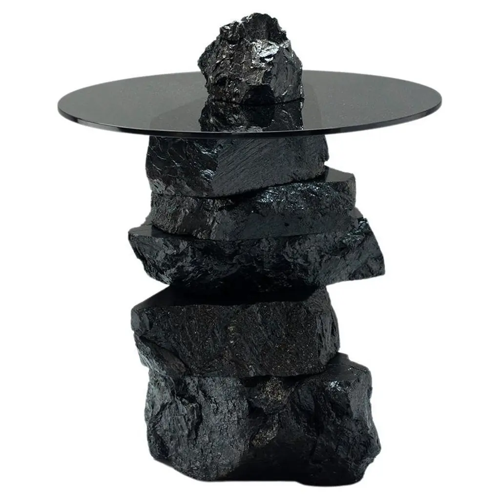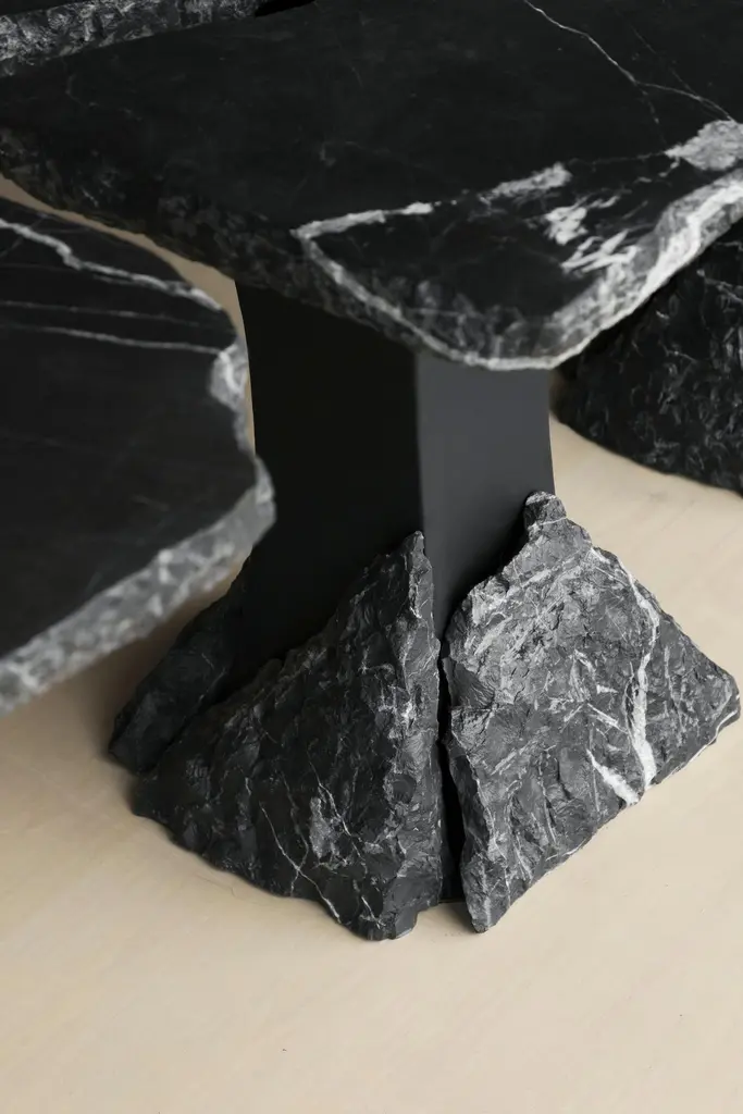 Set Of 3 Divergente Textured Black Marble Table With Split Top By Andres Monnier