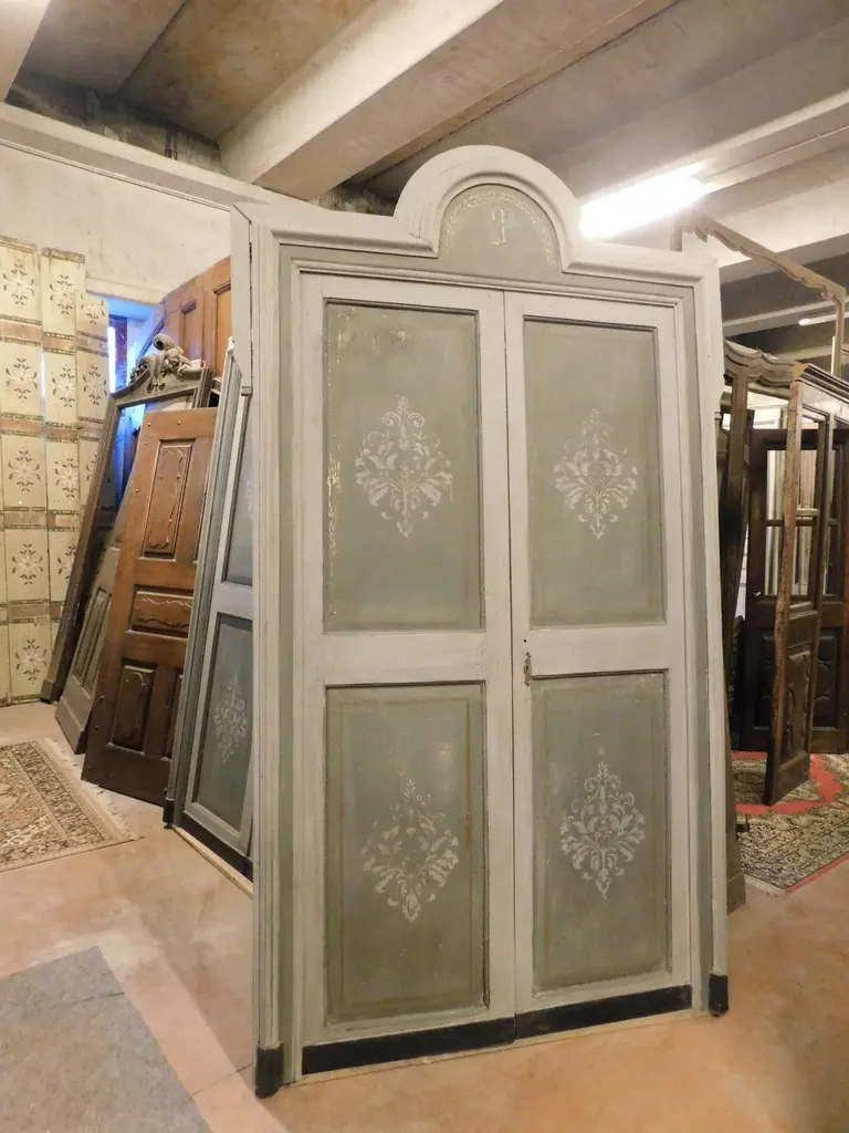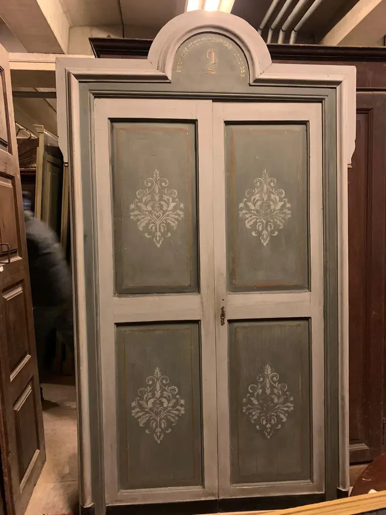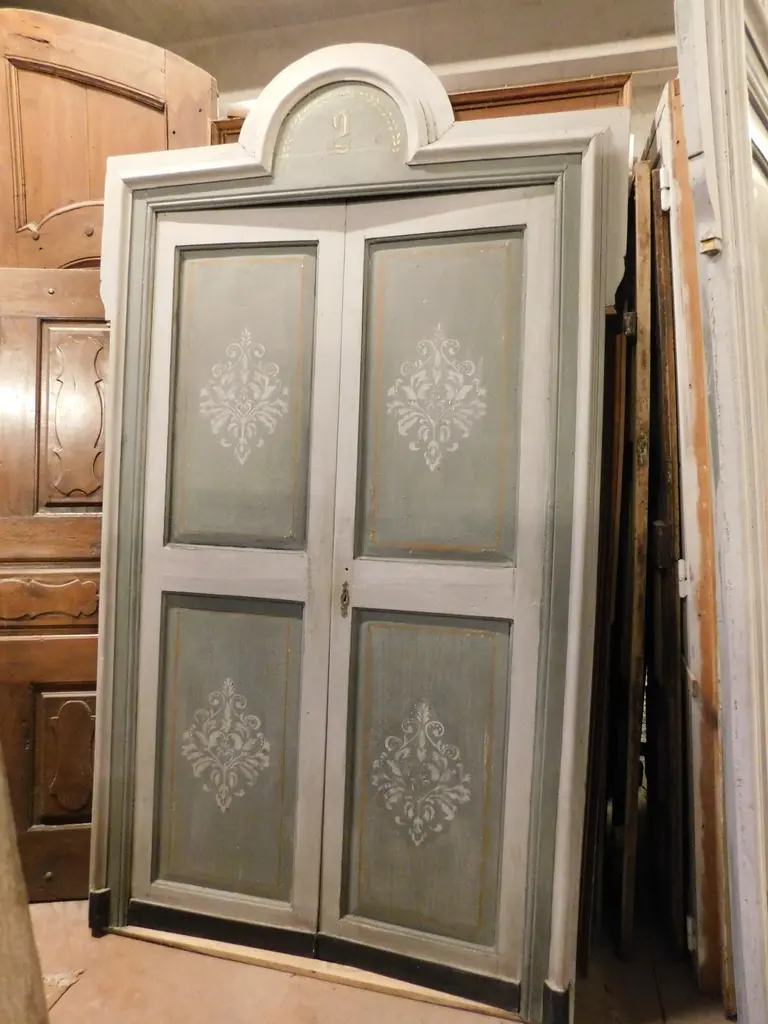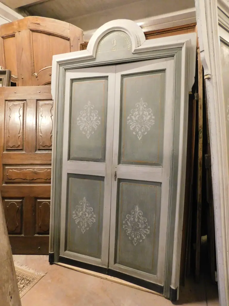 Set of 3 double doors with original frame, hand painted with baroque floral motif and number on the top of the frame, originating from a hotel structure in Italy, they were the room doors, from the 19th century, in good conservative condition , to be adapted and very beautiful if placed all together, maximum size with frame cm W 138 x H 250, light cm L 115 x H 207.