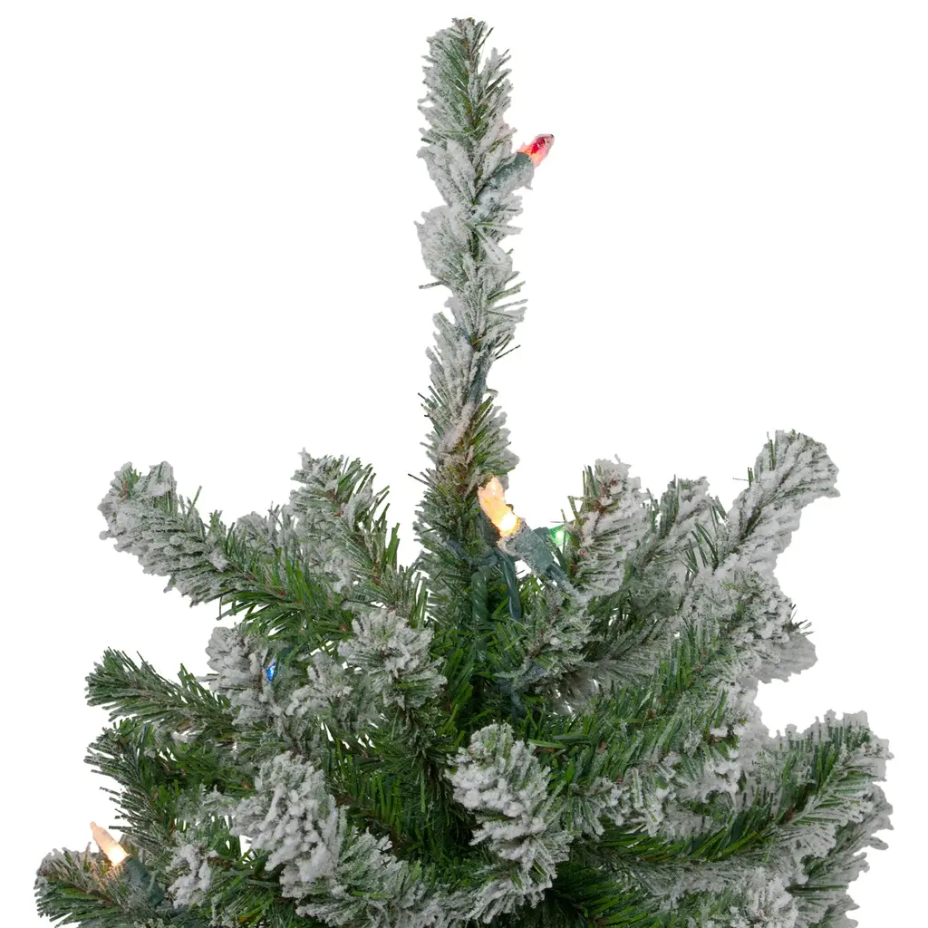 Set Of 3 Flocked Alpine Artificial Christmas Trees 5' - Multi Lights - 5 Foot - Green - 5 Foot