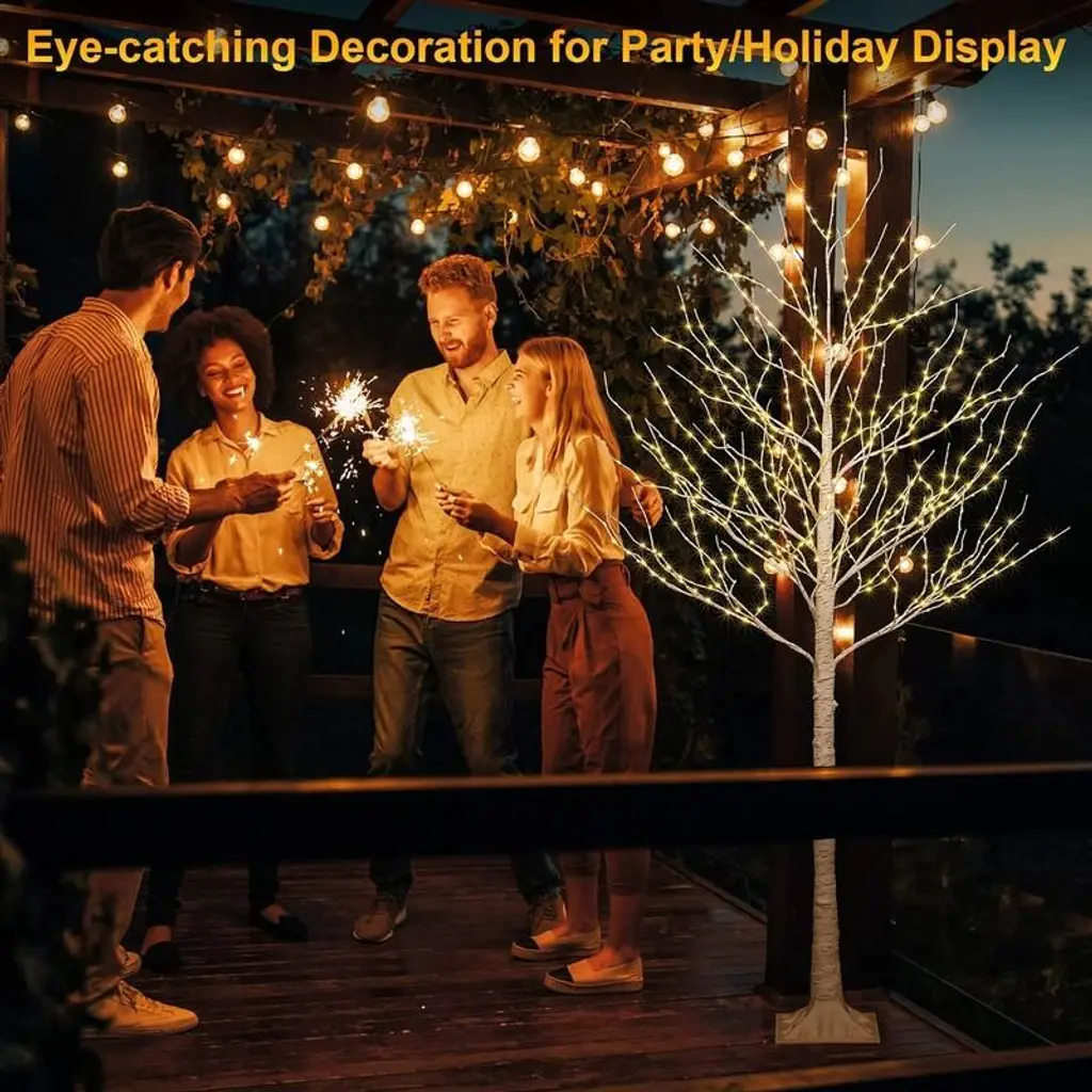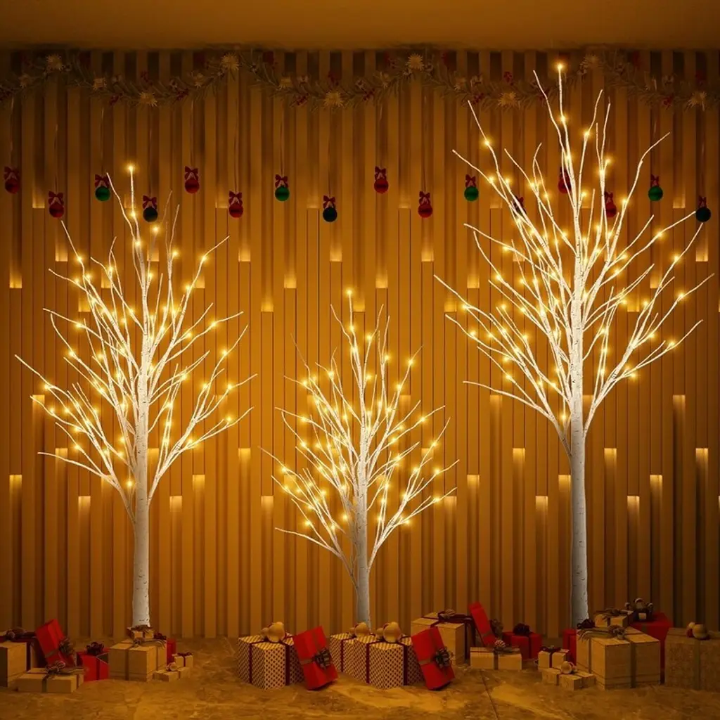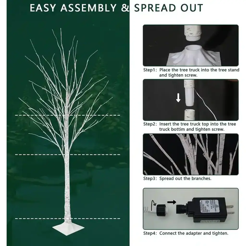 It’s the most wonderful time of the year, and if your Christmas decor needs a quick refresh, this lighted tree set is the perfect pick. Crafted from metal and PVC, this piece features a birch tree silhouette with 92 white LED lights, so it brightens up your space in an eye-catching holiday style. At 4-feet, 5-feet, and 6-feet in height, you can design your own personal Christmas holiday setting. The 3-piece holiday trees are perfect for limited floor space. Place all three trees together to build a stunning holiday pine forest display, or separate each tree and place them individually throughout your home to accent various settings. The metal tree stand is included. This piece is designed to make a statement and can be used both outdoors and indoors.Features:Safe To Use - Metal Stable base provides stability and not easy to break. Made of PVC Material. Durable and reusable. The Fall tree lights will not be hot, safe and energy saving. You can bend the branches into any shape as you want, and hang some lightweight ornaments for your DIY decorating.Prelit Lighted Birch Trees - Life-like tree bark texture create a natural and romantic atmosphere at home on winter holidays or festivals. The brightly lit trees are beautifully shaped, and the fairy-tale warm yellow cherry blossom light can bring a warm atmosphere to the space. When you watch the decorative tree of lights as if you were seeing the stars outside.Bendable Branches - Birch tree branches are flexible enough to bend into multiple desired positions and hang holiday decorations to create your own winter wonderland. The branches can be scattered like a real tree or bent like a bunch, DIY shape the branches to your liking.Celebration Decorations - Still looking for the right holiday decorations? This lighted trees are equipped with a 10ft extension cord for your leisurely life. It can be used for every holiday decoration, eye-catching decoration for Christmas Easter Valentine's Day, widely used in parties, Weddings, gardens, Bedrooms, Living rooms and Patio. Whether indoor or outdoor, delicate lights tree are one of the decorations.Easy to Assemble - The whole lighted Christmas tree structure is divided into 2 or 3 parts, which are easy to assemble together. Take out the tree stand, put the trunk into the tree and tighten the grooves and convex grooves, insert the top of the trunk into the bottom of the trunk and tighten. You can also place your and your family's favorite decorations on the Christmas tree.Specifications: