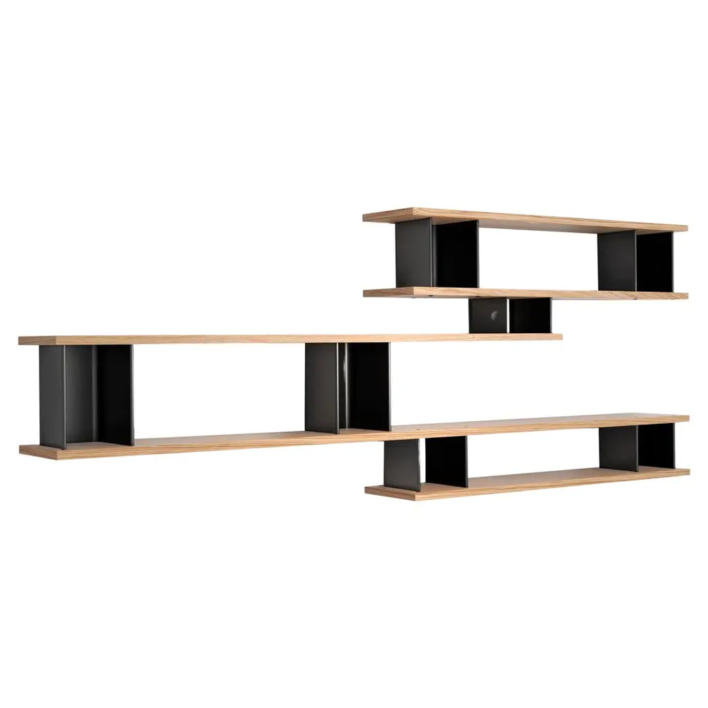 Set Of 3 Strut Shelves From Souda, 116in, Black And Maple, Made To Order
