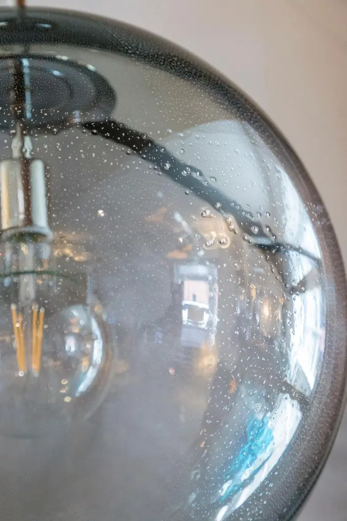 Set Of 3 Very Large Pair Italian Murano Glass Blown Grey Globe Ceiling Fixtures