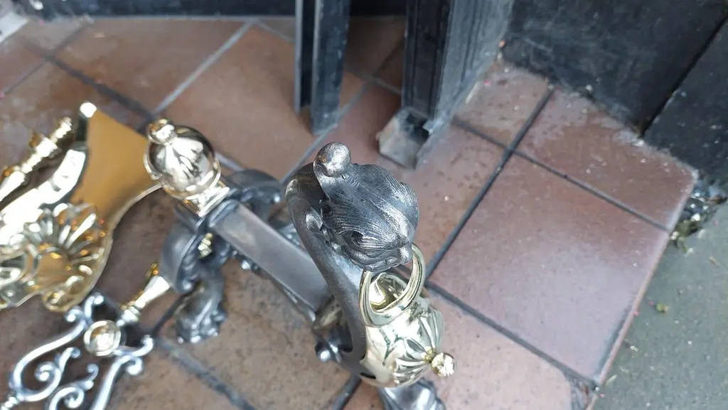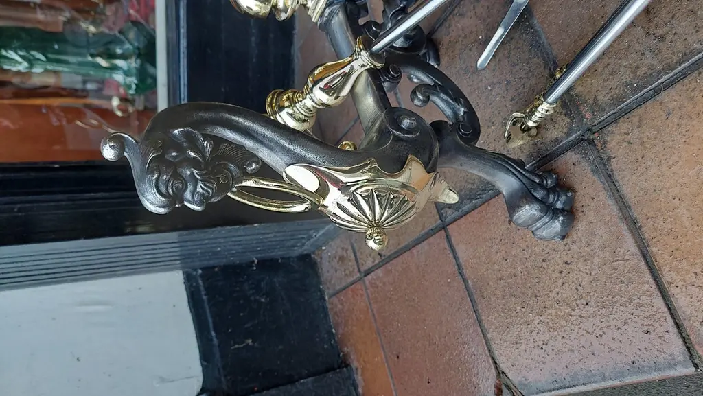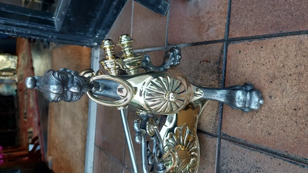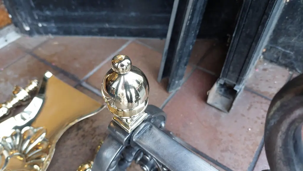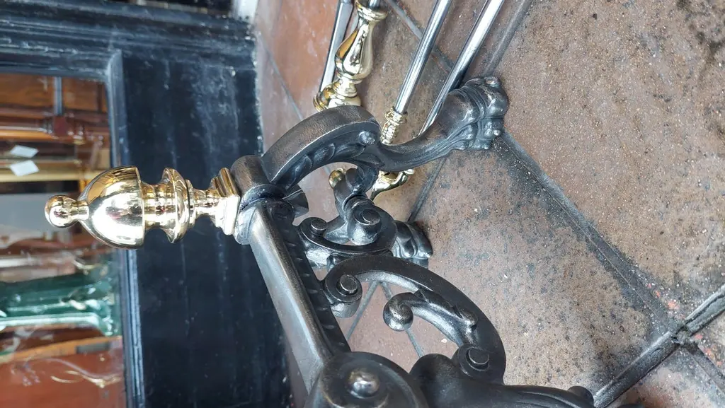 Set Of 3 Victorian Brass And Cast Iron Fire Tools With Andirons