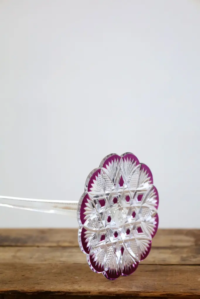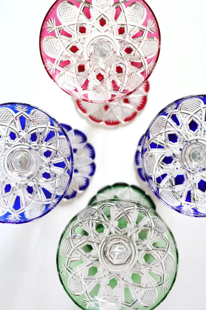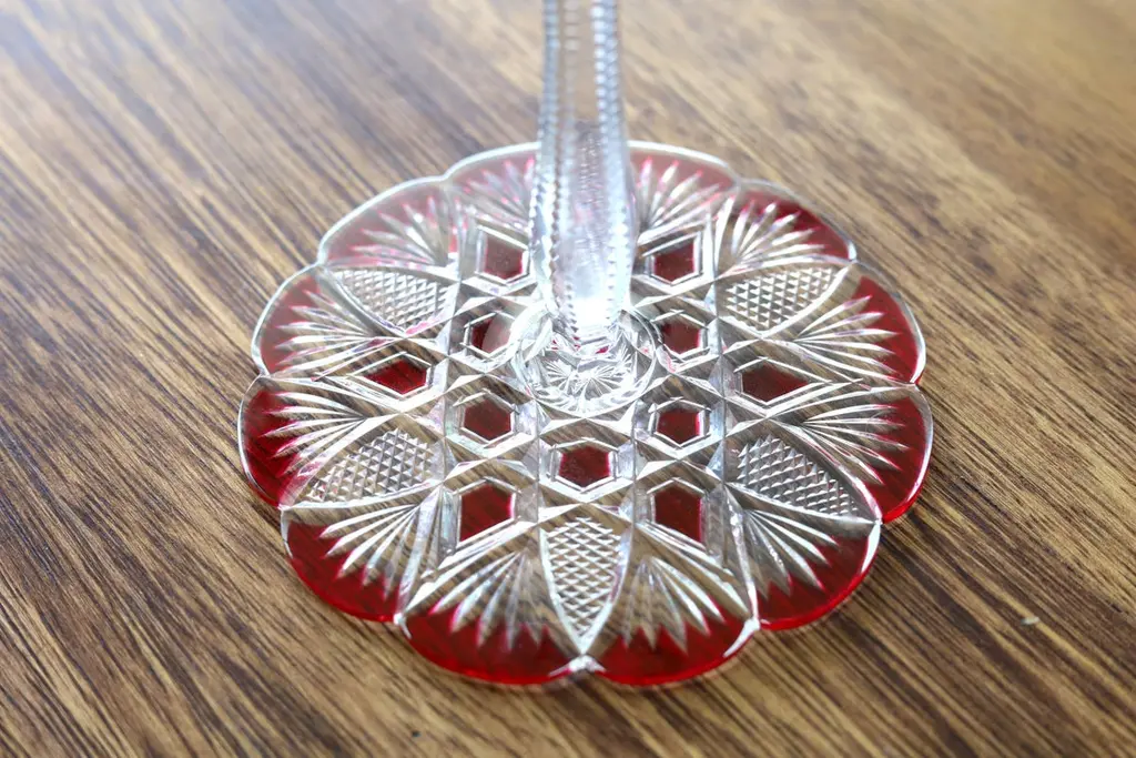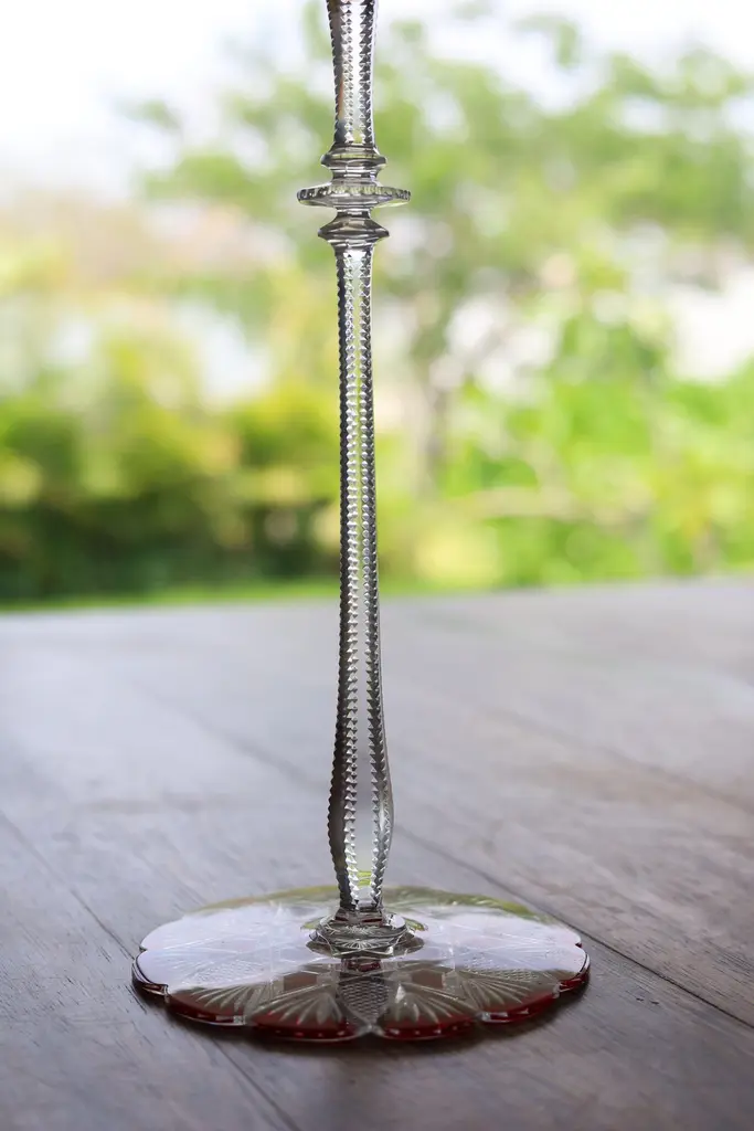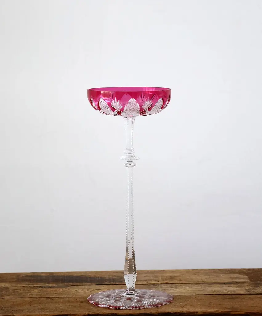 Created for Tsar Nicholas II, this clear crystal bowl - overlaid in coloured crystal with a high stem, a scalloped base, and diamond and palm leaf decorations - is spectacular. This exceptional set won over many aristocrats in the Imperial Court and is to this day a reflection of the House of Baccarat's excellence. Different colors available.Stamped and signed.Great condition probably never used.