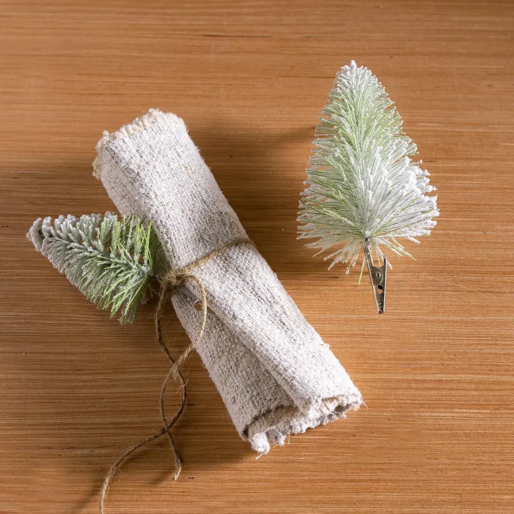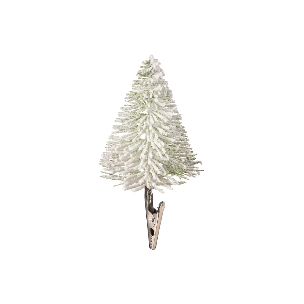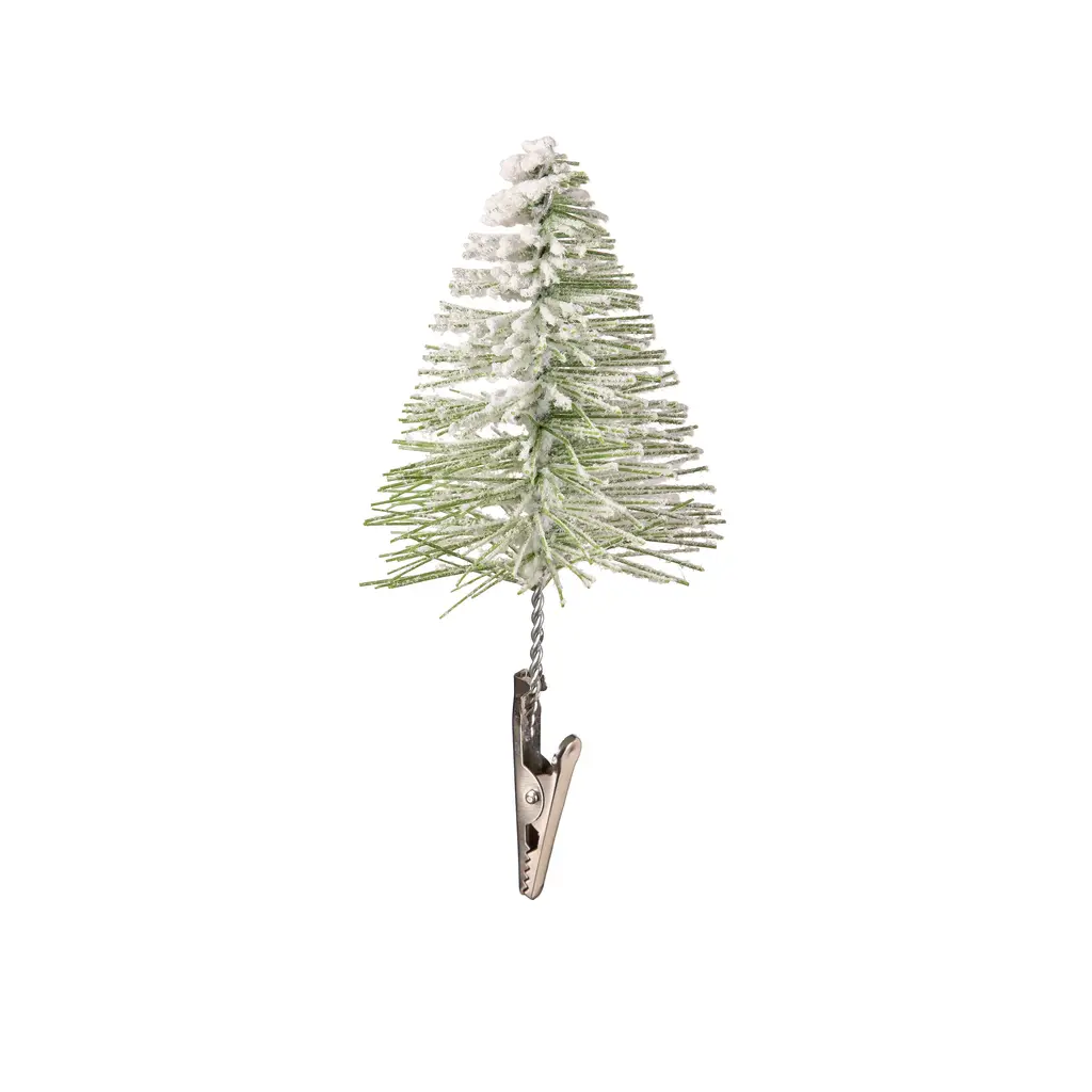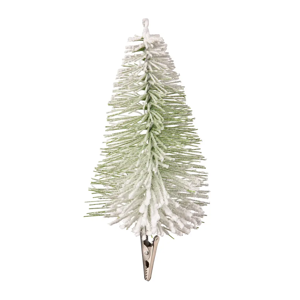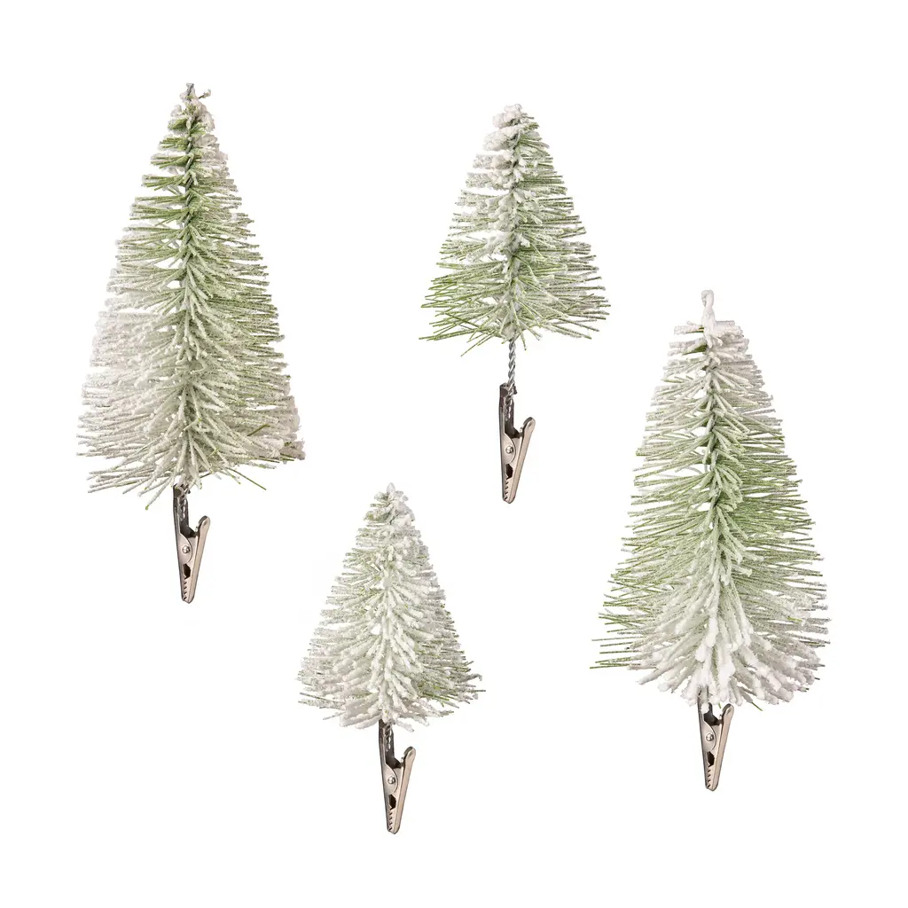 Add charm and warmth to your holiday decorations with our Set of 4 Clip-On Bottle Brush Décor. These flocked trees radiate festive cheer and are bound to become a beloved part of your seasonal décor.Their convenient clip-on design seamlessly integrates with wreaths, garlands, and tabletop settings, ensuring a hassle-free and delightful decorating experience. Whether you're looking to add a touch of holiday magic to your dining table or spruce up your mantel, these mini-trees are your perfect companions.
