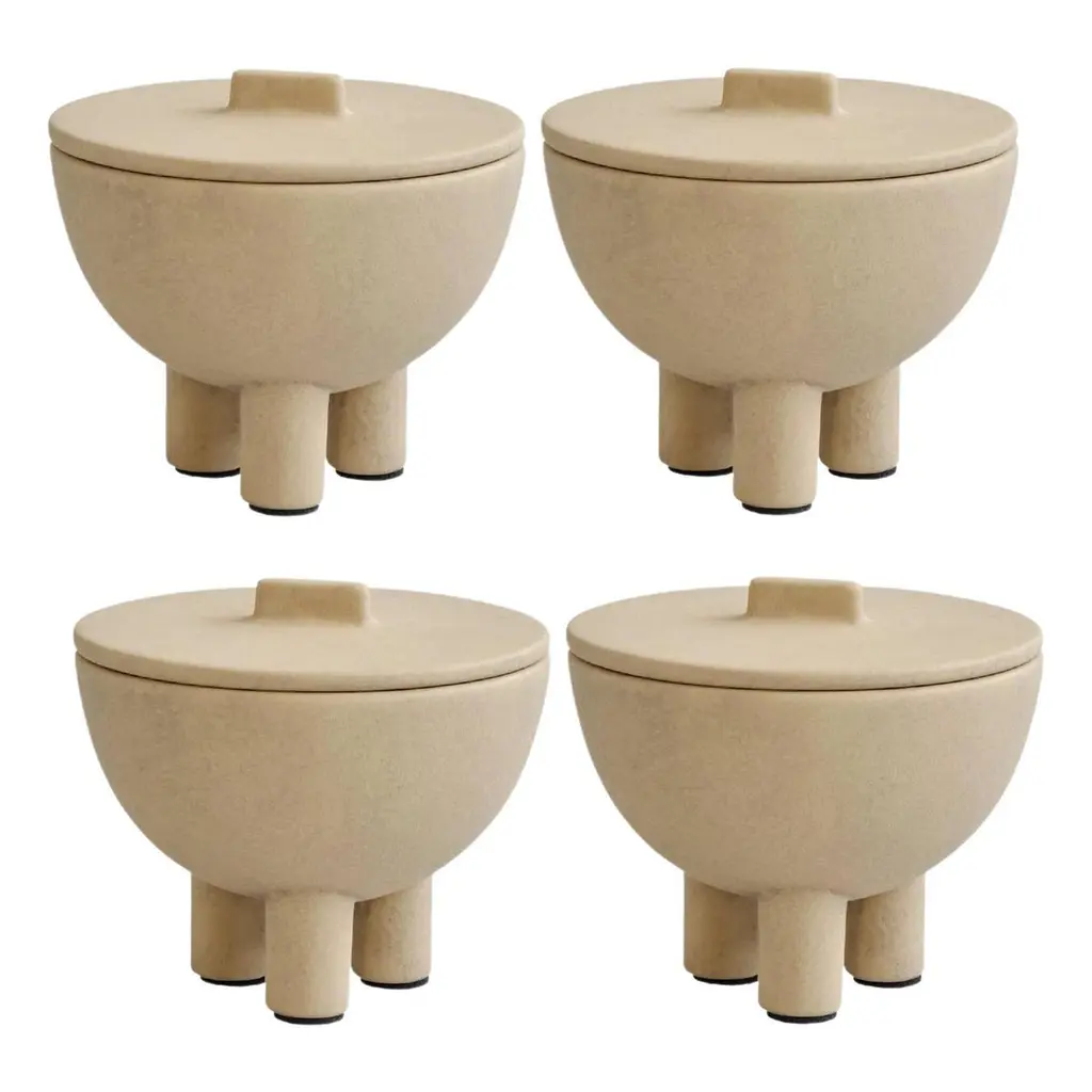 A set of 4 coffee duck jar Medio by 101 CopenhagenDesigned by Kristian Sofus Hansen & Tommy HyldahlDimensions: L12 / W12 / H9,5 CMMaterials: CeramicReminiscent of little, individual three-legged characters or friendly creatures, the Duck series is a playful and exuberant addition to more minimalist series of treys, vases, bowls, pots, jars and plates in a modern interior. Yet, true to the design manifest of 101 Copenhagen, the collection is held in natural colours to fit into the Scandinavian home. Duck comes in various shapes, sizes and colours - like individual family members gathered around a table. As it is a hand glazed natural product, the colours may vary slightly.101 Copenhagen is a Danish design brand founded in 2017. With a vision to honor exquisite quality and craftsmanship, the collection encompasses furniture, lighting and accessories in a timeless, yet modern design. With a true passion for materials and refined textures, organic shapes and colours, 101 Copenhagen presents the epitome of classics and must-have novelties for Scandinavian and international interior connoisseurs alike.