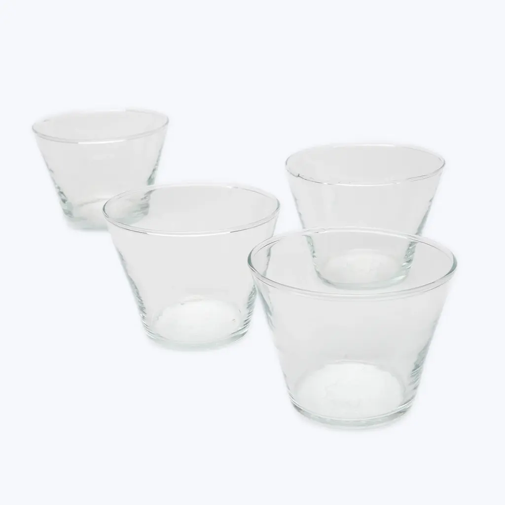 This Set of 4 Fantastic-Not-Plastic Short Glass is a festive glassware choice for your next dinner party or everyday dining routine. Inspired by classic party cups, this collection of Fantastic-Not-Plastic Short Glasses is a sustainable choice for your drinkware collection with its recycled glass origin and clean-energy creation in a family-owned factory. Each glass is one-of-a-kind, hand-blown, and hand-tinted in a variety of colors that are perfect for mixing and matching to create your own unique arrangement. Each short glass is hand-blown into custom molds and hand-painted. This process may result in subtle variations, lending to the individual character of each glass. Dishwasher and microwave safe. Made from excess stock, vintage, and sustainable materials, each piece of Rentrayage home decor is as understated as it is revolutionary.